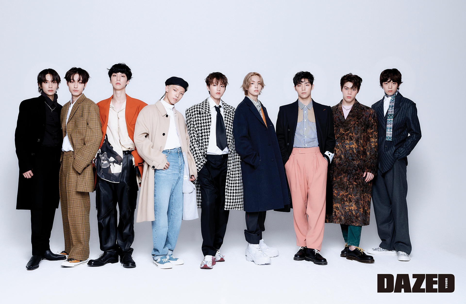 동준이 입은 모든 의상은 보테가 베네타(Bottega Veneta). 우진이 입은 슈트는 우영미(Wooyoungmi), 셔츠는 포츠V(Ports V), 스니커즈는 컨버스(Converse). 이신이 입은 재킷과 셔츠, 레더 팬츠는 우영미(Wooyoungmi), 레이스업 슈즈는 프라다(Prada). 준성이 입은 캐시미어 코트와 터틀넥, 데님 팬츠는 모두 라코스테(Lacoste), 베레와 슬립온은 디올 맨(Dior Men). 진우가 입은 더블브레스트 코트와 셔츠, 팬츠, 타이는 모두 칸민(Kanmin), 스니커즈는 리복 X 코트와일러(Reebok X Cottweiler). 강성이 입은 코트와 셔츠는 디올 맨(Dior Men), 오버사이즈 카디건은 솔리드 옴므(Solid Homme), 스트레이트 팬츠는 프라다(Prada), 하이톱 스니커즈는 메종 마르지엘라 X 리복(Maison Margiela X Reebok). 준형이 입은 코트는 오프화이트(Off -White™), 셔츠는 포츠V(Ports V), 팬츠는 챈스챈스(Chance Chance), 레이스업 부츠는 닥터마틴(Dr. Martens). 프린스가 입은 날염 코트는 우영미(Wooyoungmi), 니트는 라코스테(Lacoste), 데님 팬츠는 오프화이트(Off -White™), 레이스업 부츠는 닥터마틴(Dr. Martens). 태승이 입은 하프 재킷과 와이드 팬츠는 메종 마르지엘라(Maison Margiela), 셔츠는 자크뮈스(Jacquemus), 스카프와 하이톱 스니커즈는 디올 맨(Dior Men).