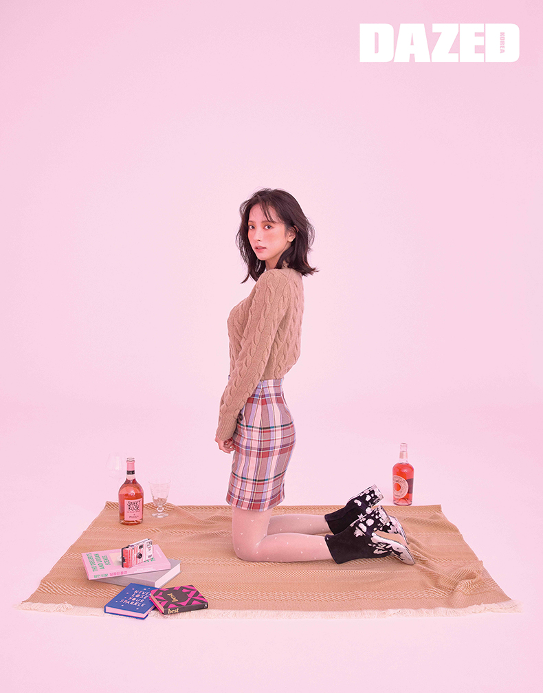 카디건은 랄프 로렌(Ralph Lauren), 체크 스커트는 타미 힐피거(Tommy Hilfiger), 부츠는 메종 마르지엘라(Maison Margiela), 스타킹은 에디터의 것.