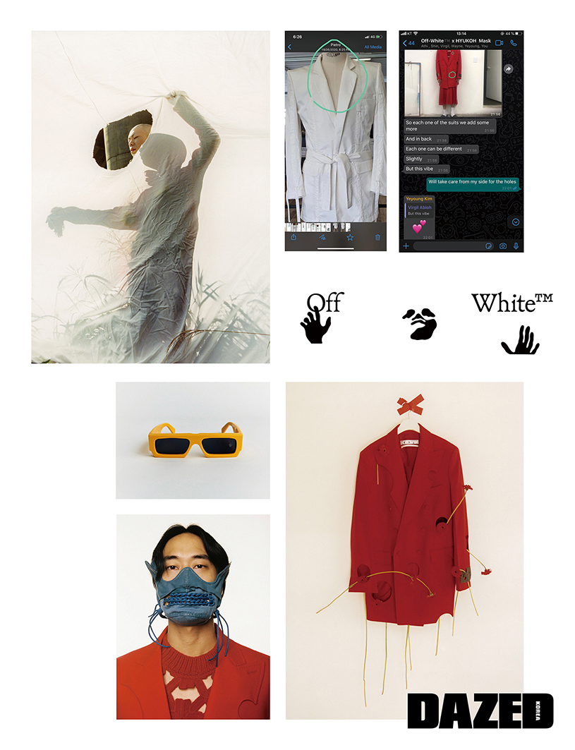 현제가 입은 모든 의상은 혁오를 위해 버질 아블로가 제작한 것으로 오프화이트 X 혁오(Off-White™ X Hyukoh).
