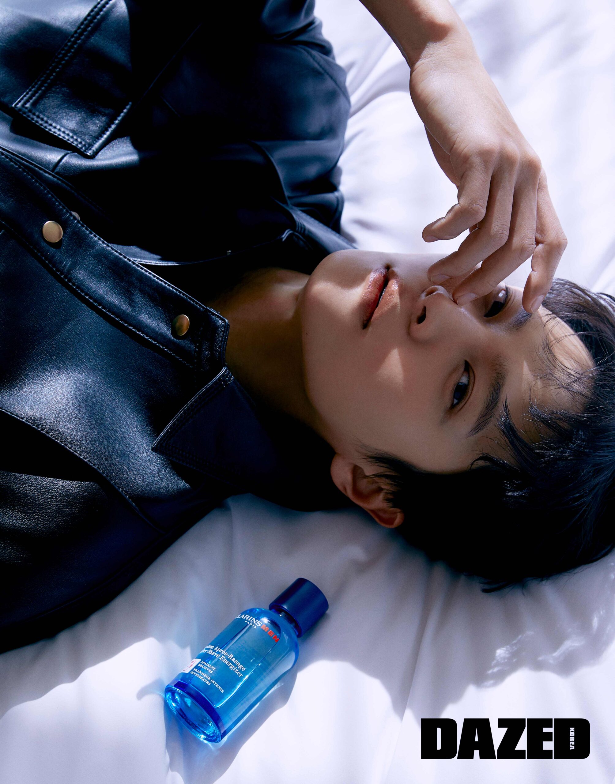 주원이 손에 들고 있는 제품은 면도 후 민감해진 피부를 진정시켜 트러블을 예방하는 애프터 쉐이브 에너자이저 100ml 4만6000원, 클라랑스 맨(Clarins Men).