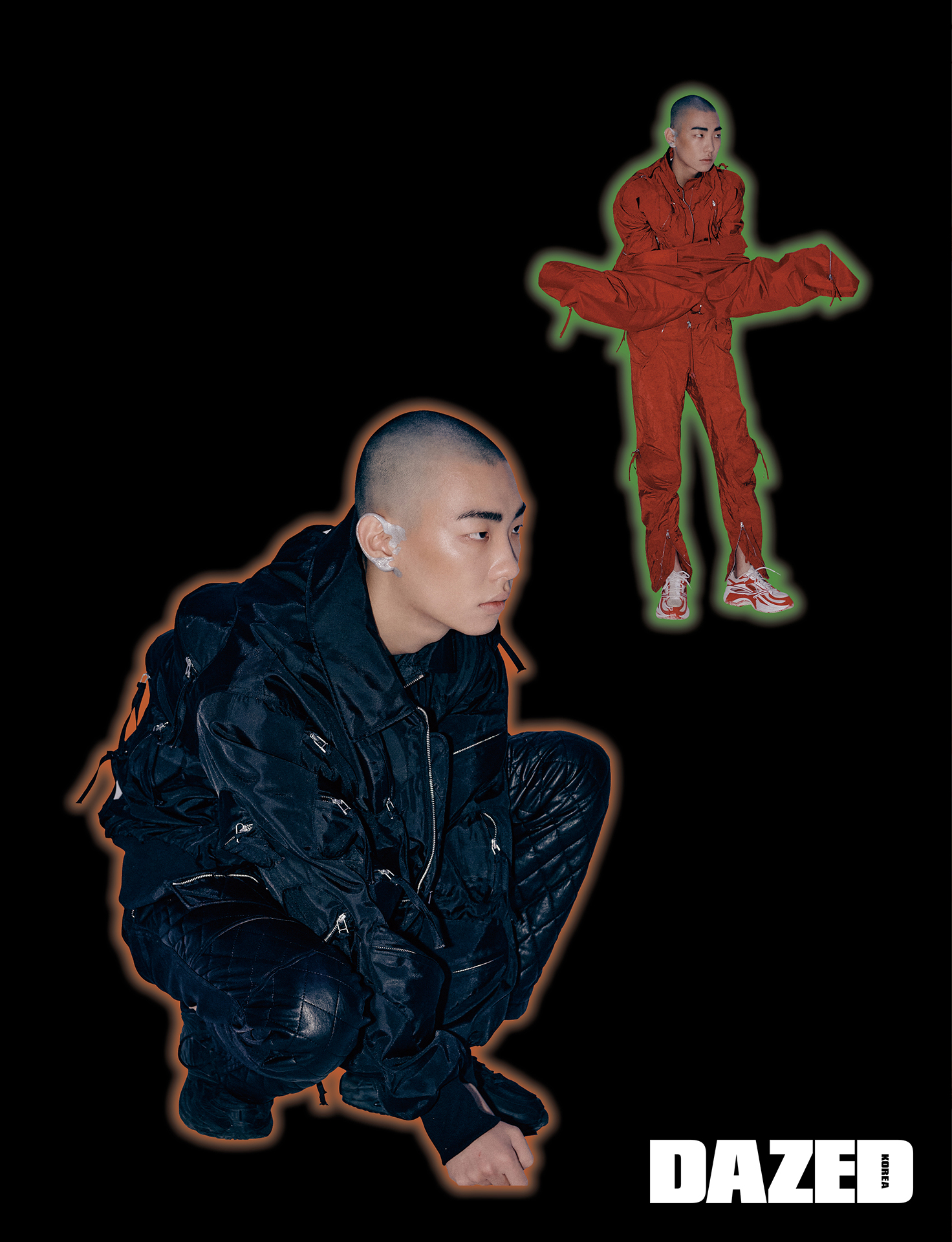 후디 점퍼와 팬츠, 스니커즈는 모두 강혁(Kanghyuk).