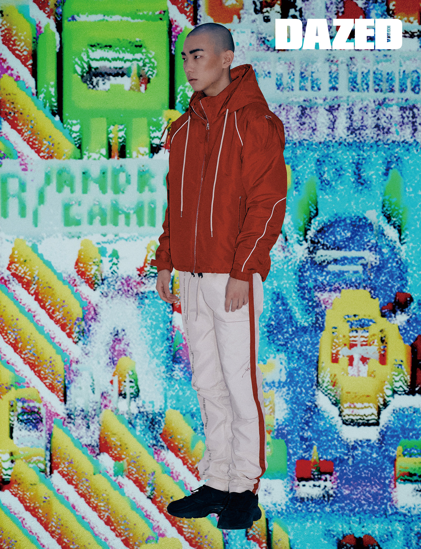 (아래) 점퍼와 팬츠, 스니커즈는 모두 강혁(Kanghyuk).
