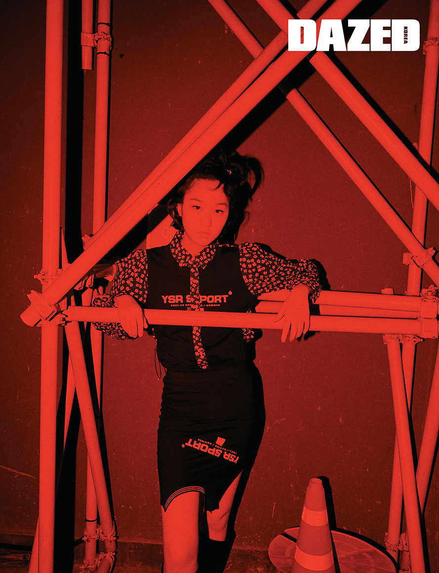 채령이 입은 셔츠와 대칭을 이룬 스커트는 모두 유저(Youser).