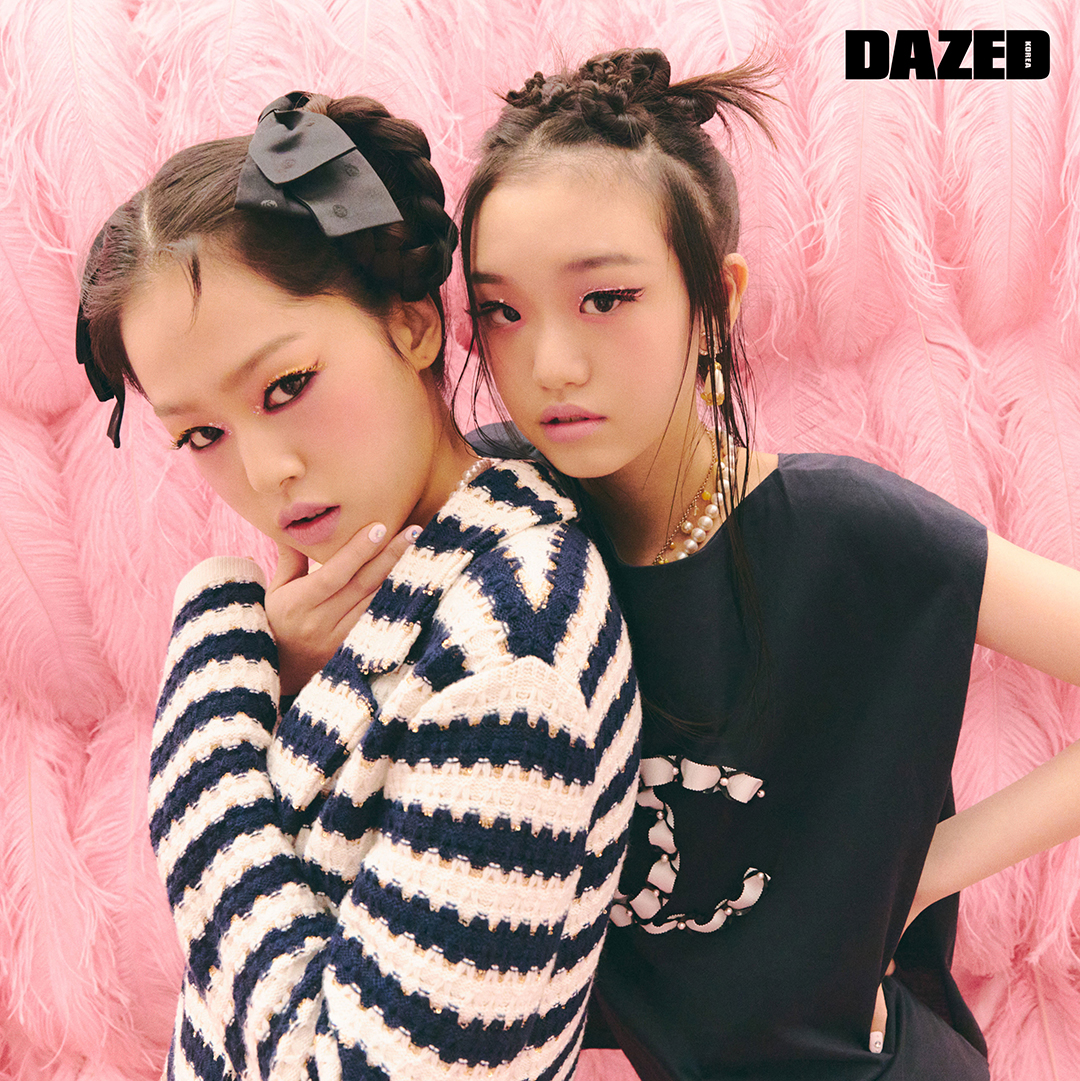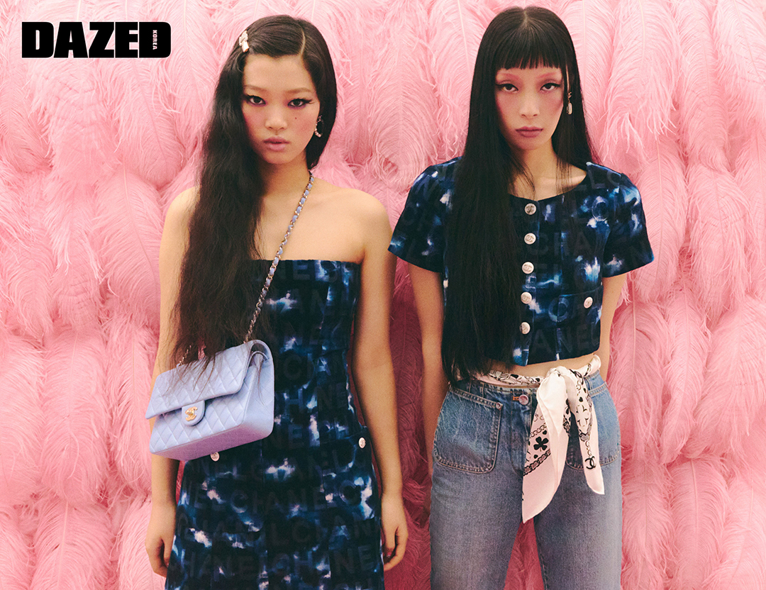 (왼쪽부터) 성민이 입은 캐시미어 폴리아미드 소재의 재킷과 리본 헤어핀은 샤넬(Chanel). 영서가 입은 코튼 저지 소재의 톱과 이어링, 레이어링한 네크리스는 모두 샤넬(Chanel).