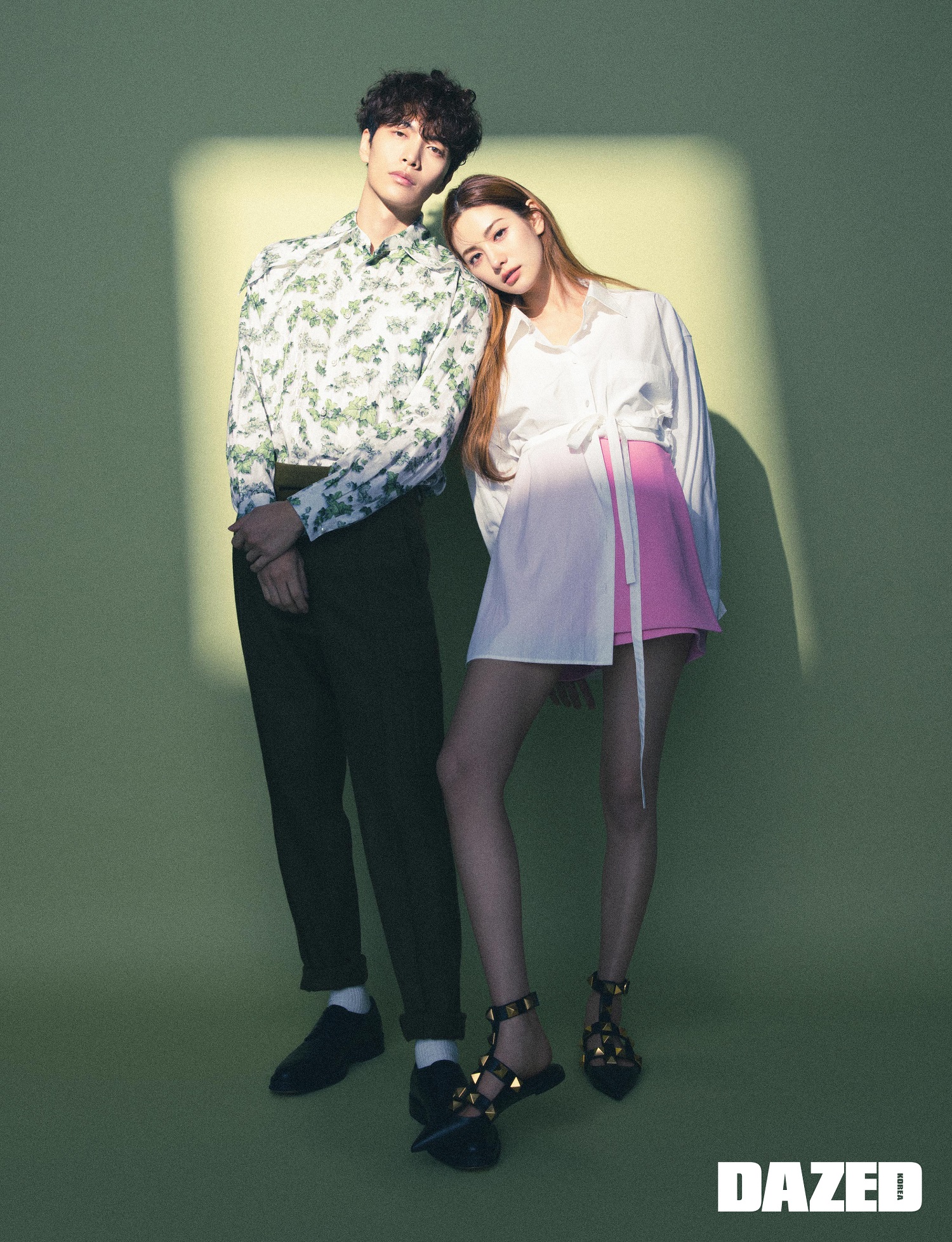 민기가 입은 프린트 패턴 셔츠와 팬츠는 디올 맨(Dior Men), 블랙 로퍼는 던힐(Dunhill). 나나가 입은 리본 웨이스트 디테일 셔츠와 핑크 랩 쇼츠는 발렌티노(Valentino), 로만 스터드 슈즈는 발렌티노 가라바니(Valentino Garavani).