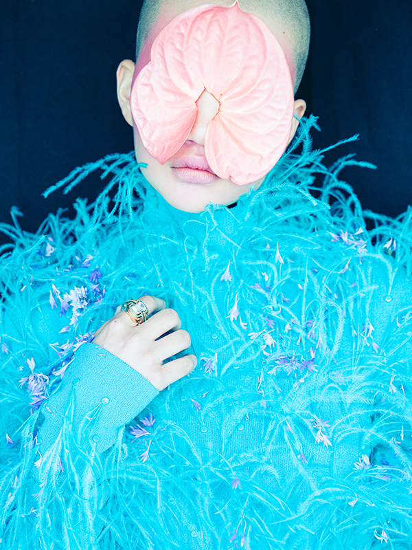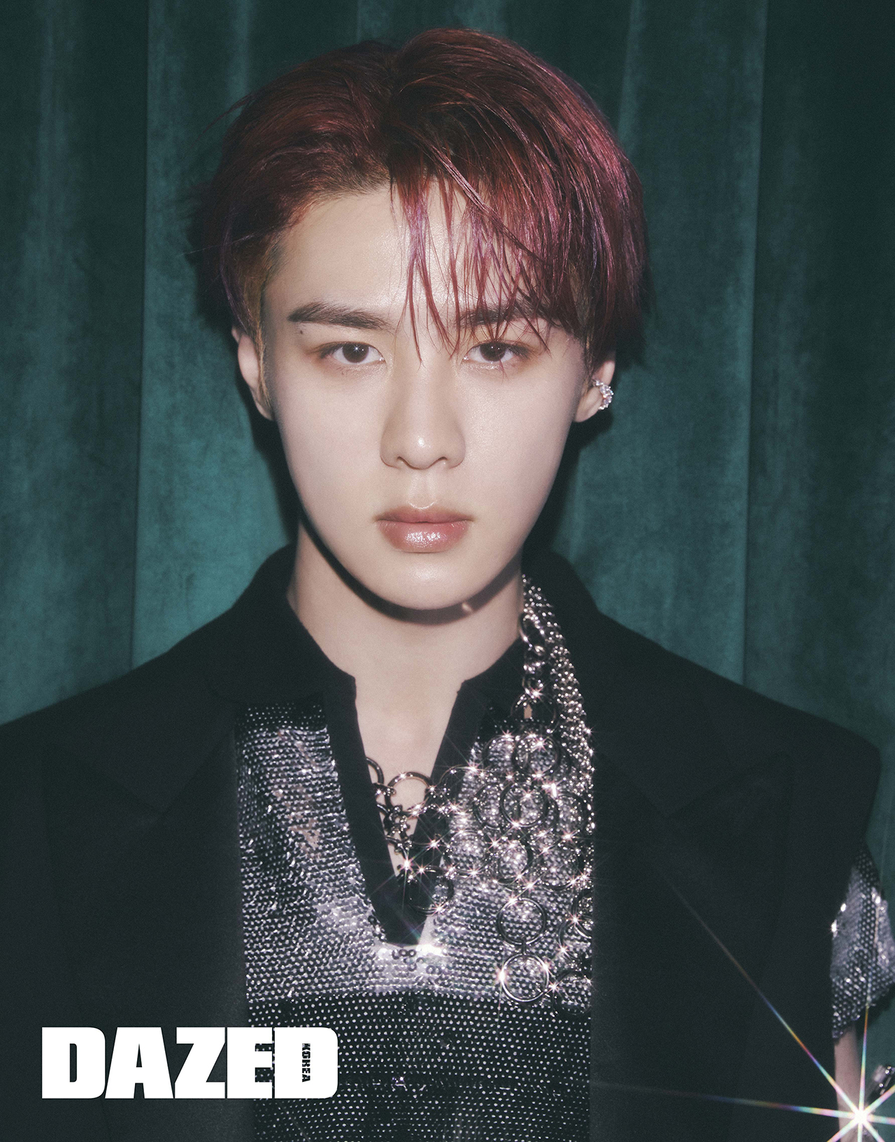 블랙 슬리브리스 재킷은 어네스트 W. 베이커(Ernest W. Baker), 스트라이프 스팽글 셔츠는 오디너리 피플(Ordinary People), 실버 네크리스는 드리스 반 노튼 by 분더샵(Dries Van Noten by BOONTHESHOP), 브레이슬릿과 이어커프는 아프로즈(Aphrose).