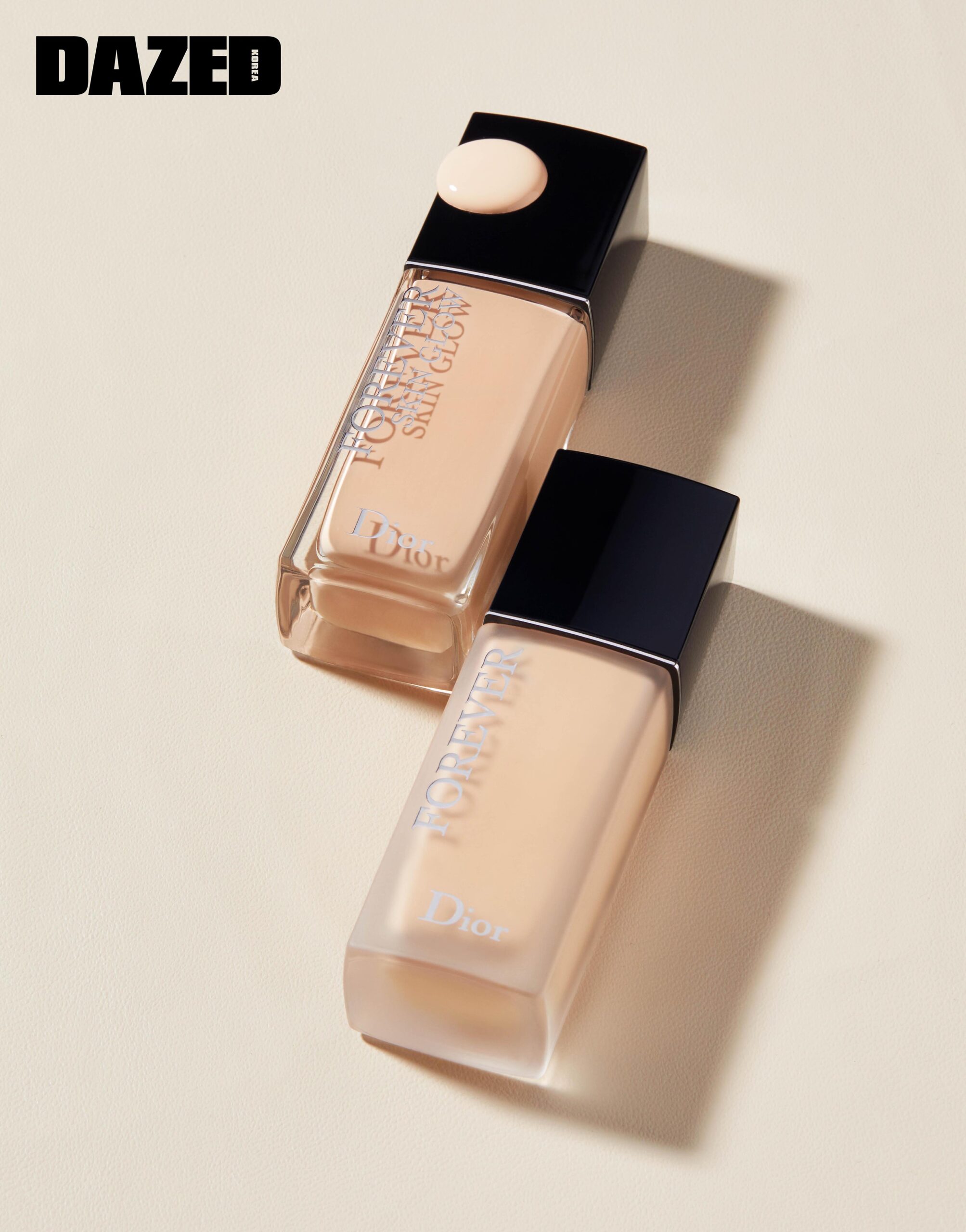 흡수력이 뛰어난 비즈 성분이 피부 위 겉도는 유분기를 잡아줘 번들거리지 않으면서 투명하게 표현해주고, 피그먼트 파운데이션 입자가 피부에 편안하게 밀착되어 정교하고 매끈한 윤기가 흐르는 벨벳 피니쉬를 연출하는 디올 포에버 24H 웨어 스킨-케어링 파운데이션 SPF35/PA++ 30ml 8만원대, 디올 뷰티(Dior Beauty).