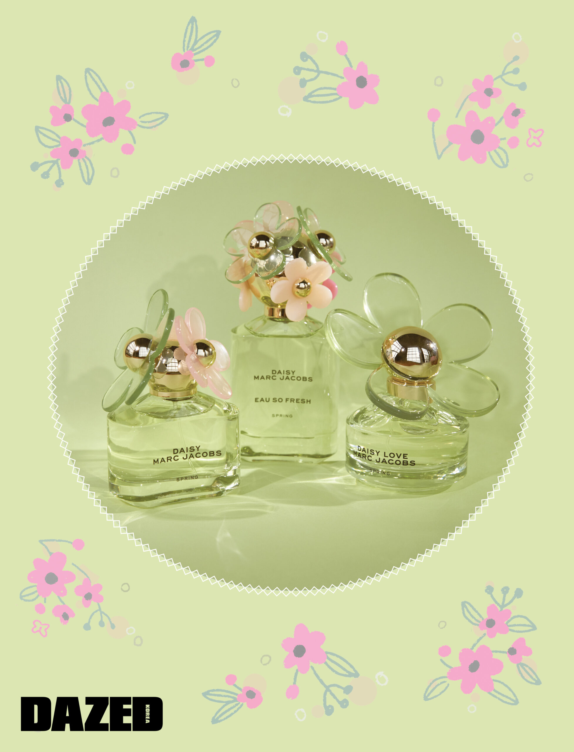 아마크 제이콥스를 상징하는 데이지 향에 봄의 가볍고 풋풋한 계절감을 더한 데이지 스프링 리미티드 에디션. 따사로운 봄, 자연의 생동감에게 영감을 받은 투명한 그린 컬러 보틀과 커다란 젤리 텍스처의 말랑한 꽃잎으로 장식한 뚜껑은 풀과 꽃이 파릇파릇하게 피어오른 봄의 정원을 떠오르게 한다. 플로럴한 첫 향과 은은한 잔향이 부담스럽지 않아 생애 첫 향수로 제격이다.