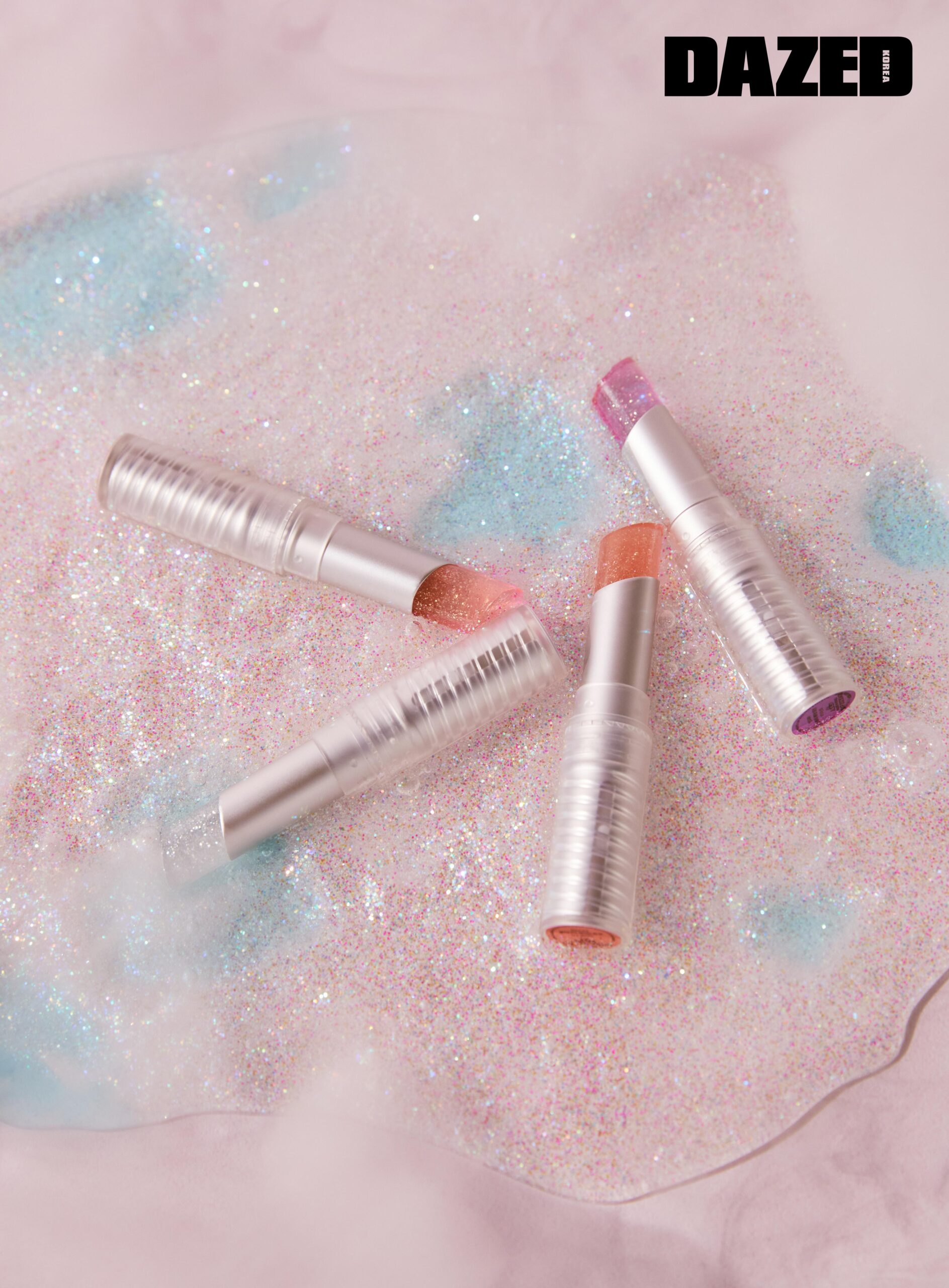 은은한 글리터가 몽환적인 유리알 입술을 연출하는 글리터리 웨이브 립 밤 N°4 크레이버, N°1 넷라이크, N°2 글리미, N°3 미스틱 각각 4.5g 1만4000원, 언리시아(Unleashia).