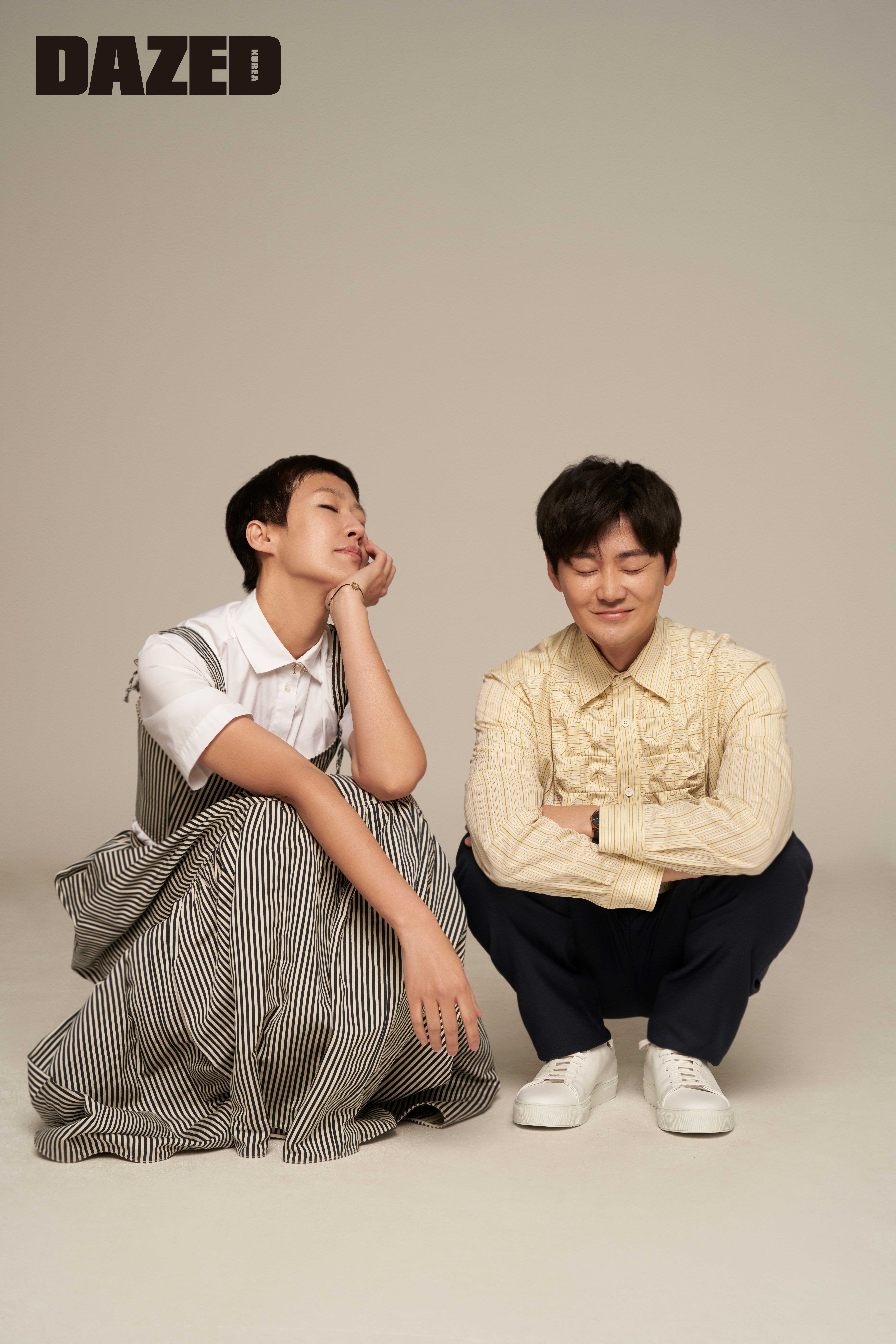 진경이 입은 블라우스와 스트라이프 패턴 브라톱, 롱스커트, 부츠는 모두 디올(Dior), 브레이슬릿은 진경의 것. 석로가 입은 셔츠는 엔초비(Anchovi), 팬츠는 디올 맨(Dior Men), 스니커즈는 COS, 워치는 석로의 것.