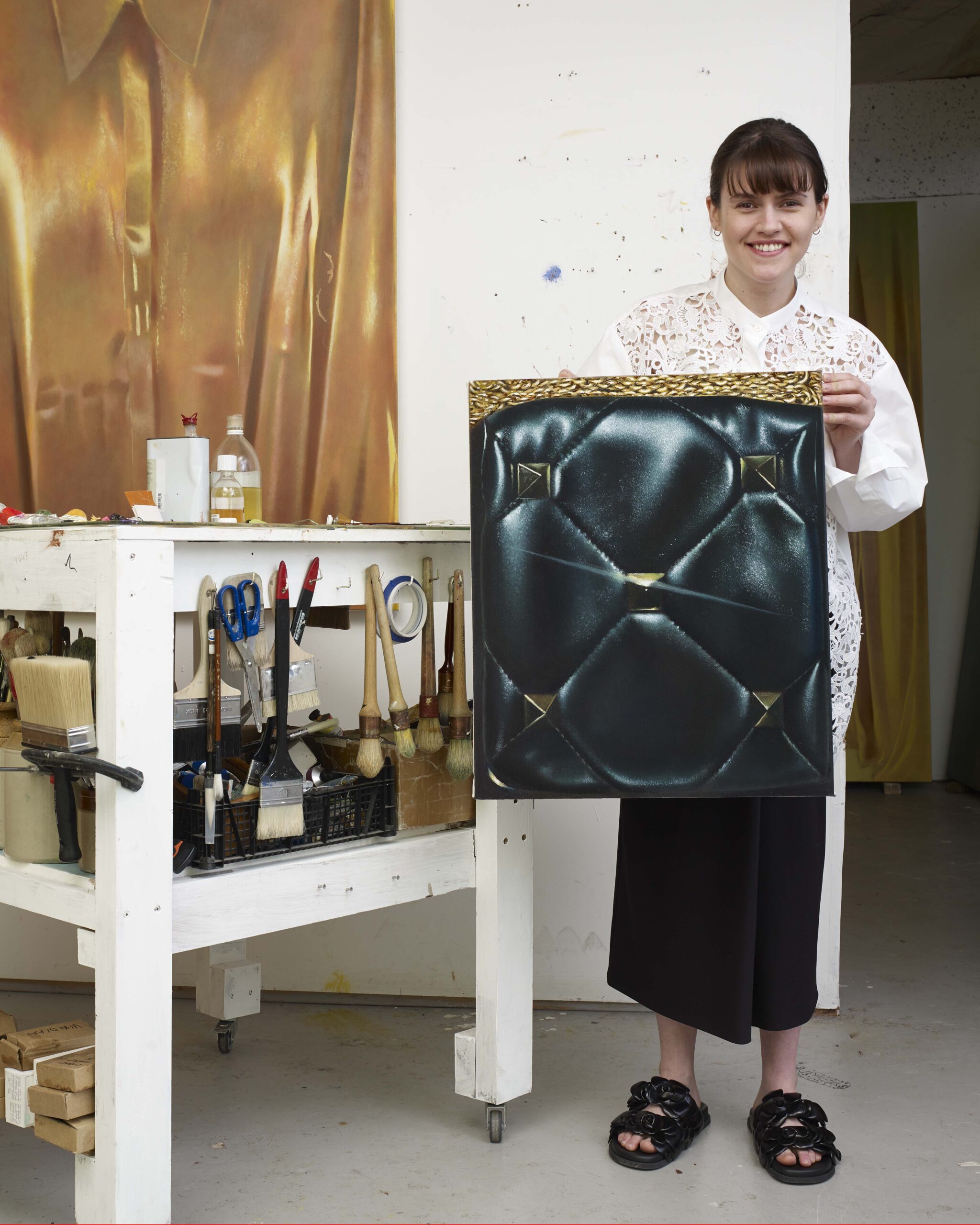 나다운 방식으로 현실과 동떨어진 색다른 느낌을 만들 수 있지 않을까 하는 고민을 했다. 3~4주 정도 시간이 걸렸는데 작업 방향에 대한 고민을 하는데 2~3주 정도의 시간을 할애했다. 늘 작업 방향을 먼저 정하고 착수를 하는 순간부터는 몰입해 빠르게 작업을 한다. 방향을 설정하기까지 비교적 오랜 시간이 걸린다. 어두운 우주 공간에서 반짝이는 별과 그 가운데 로만 스터드 백과 스터드의 존재가 자연스럽게 드러나기를 바랐다. 너무 부각되어서도 묻혀서도 안 되었기 때문에 그 균형을 맞추기 위해 노력했다. 우주의 차분함 속에서 역동적인 그네의 모습을 담고 싶었다.