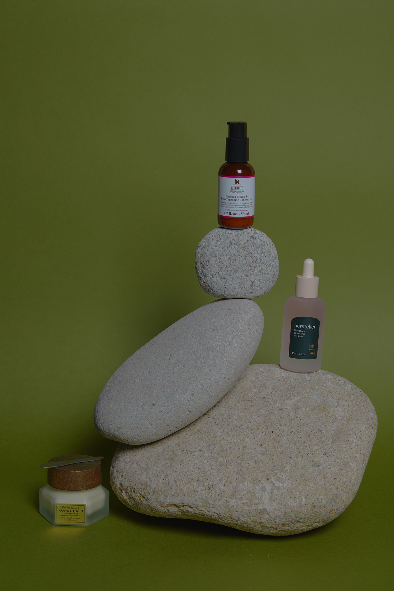 왼쪽부터 시어버터와 꿀을 함유해 보습과 탄력 개선에 효과적인 허니 헤일로 50ml 5만5000원, 파머시(Farmacy). 모공을 타이트하게 조여 리프팅 효과를 높이고 탄력 개선에 도움을 주는 모공 탄력 에센스 50g 9만8000원, 키엘(Kiehl’s). 진정 및 보습 기능의 시럽 앰풀로 민감한 피부에도 사용할 수 있는 리틀 드롭스 글로우 시럽 45ml 5만2000원, 허스텔러(Hersteller).