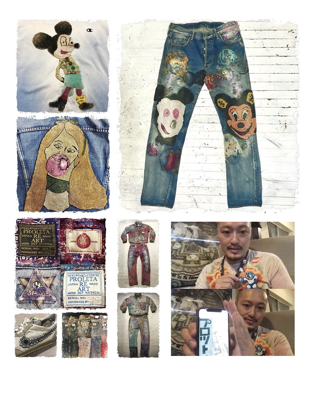 “먼저 바탕이 되는 헌 옷을 세탁한 뒤 해체해 수선하고 패치워크, 자수 등을 맞춤형으로 디자인한다. 그 다음에 원래 옷 형태로 재봉해 손으로 빈티지 가공을 한다. 또 일부를 해체하고 리메이크한 다음 그것을 다시 리메이크해 빈티지 가공의 느낌을 더한다. 마지막으로 또 한 번 세탁하는 매우 복잡한 공정을 거친다.”