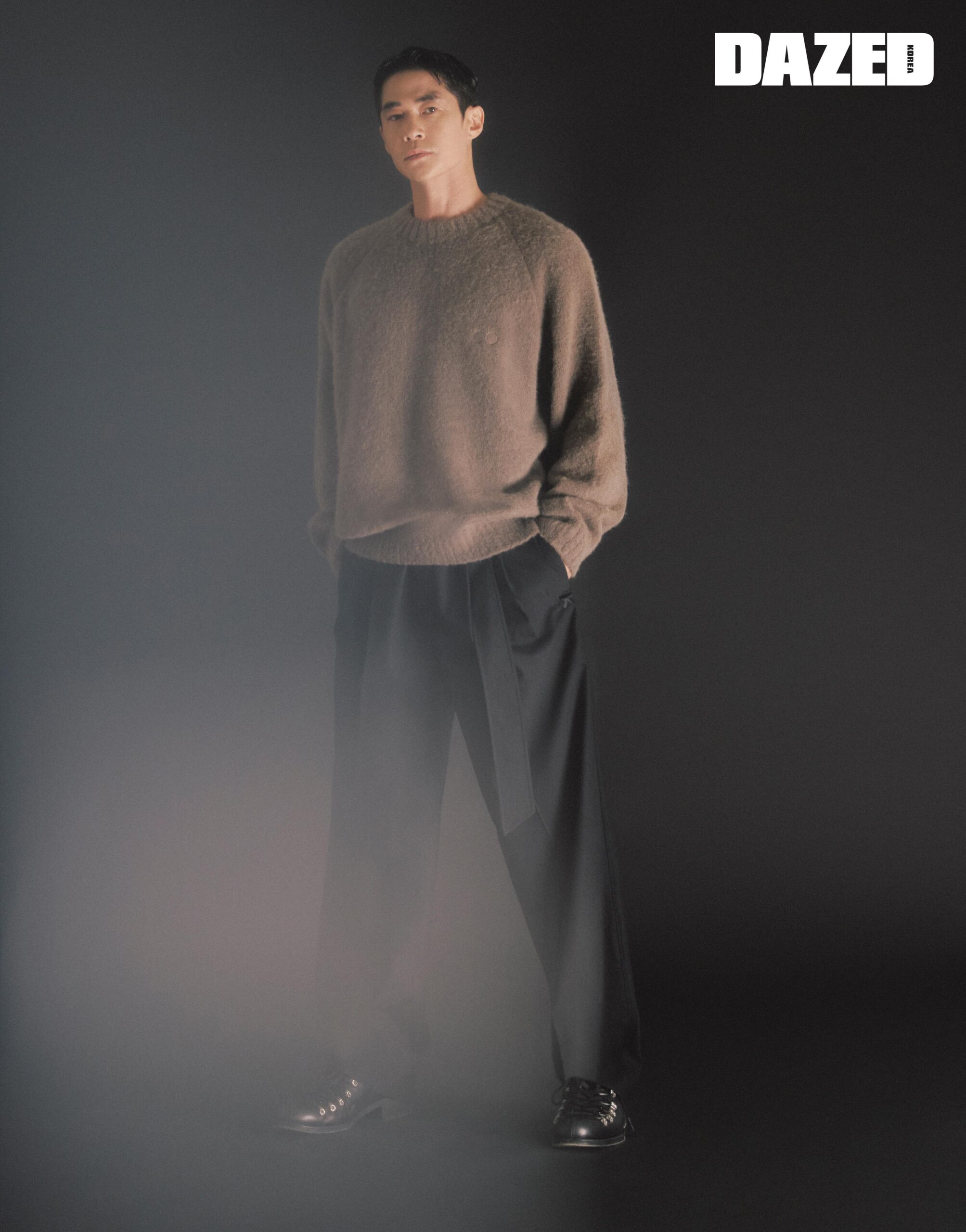 니트 톱과 와이드 팬츠는 송지오 x 배정남 아뜰리에 컬렉션(SONGZIO×BAE Atelier Collection), 마운틴 슈즈는 송지오(Songzio).