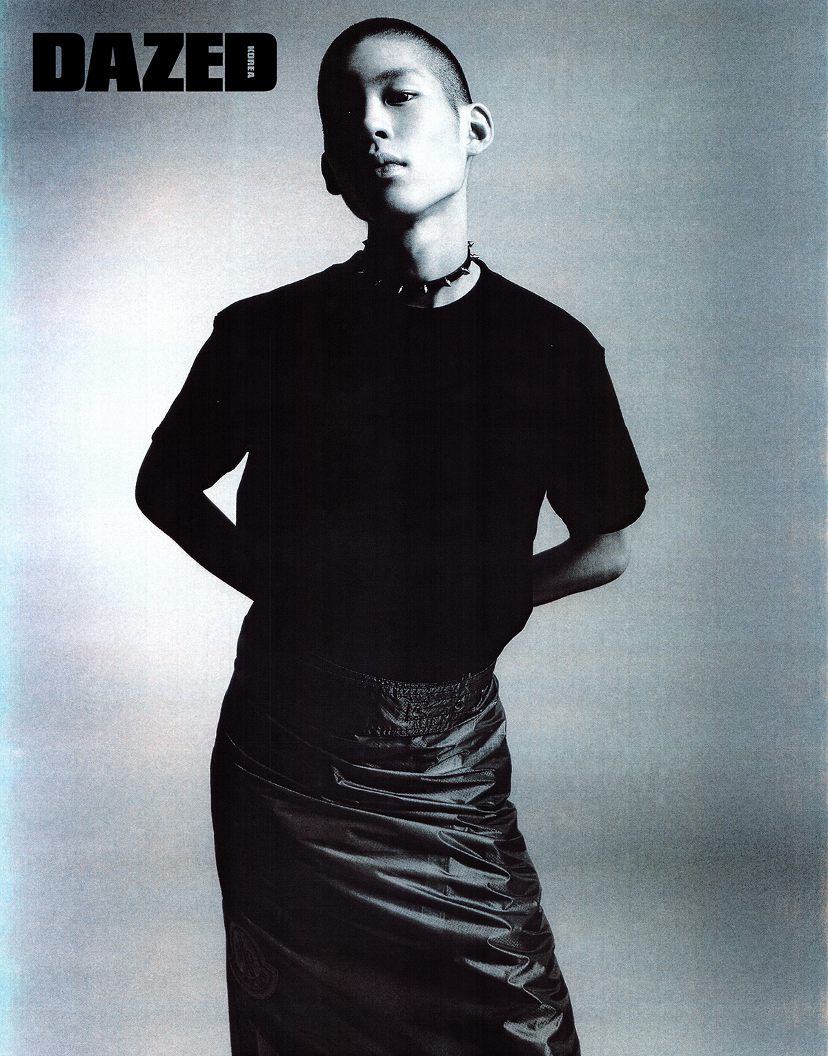 티셔츠는 루이 비통(Louis Vuitton), 랩스커트는 2 몽클레르 1952(2 Moncler 1952), 초커는 스타일리스트의 것.
