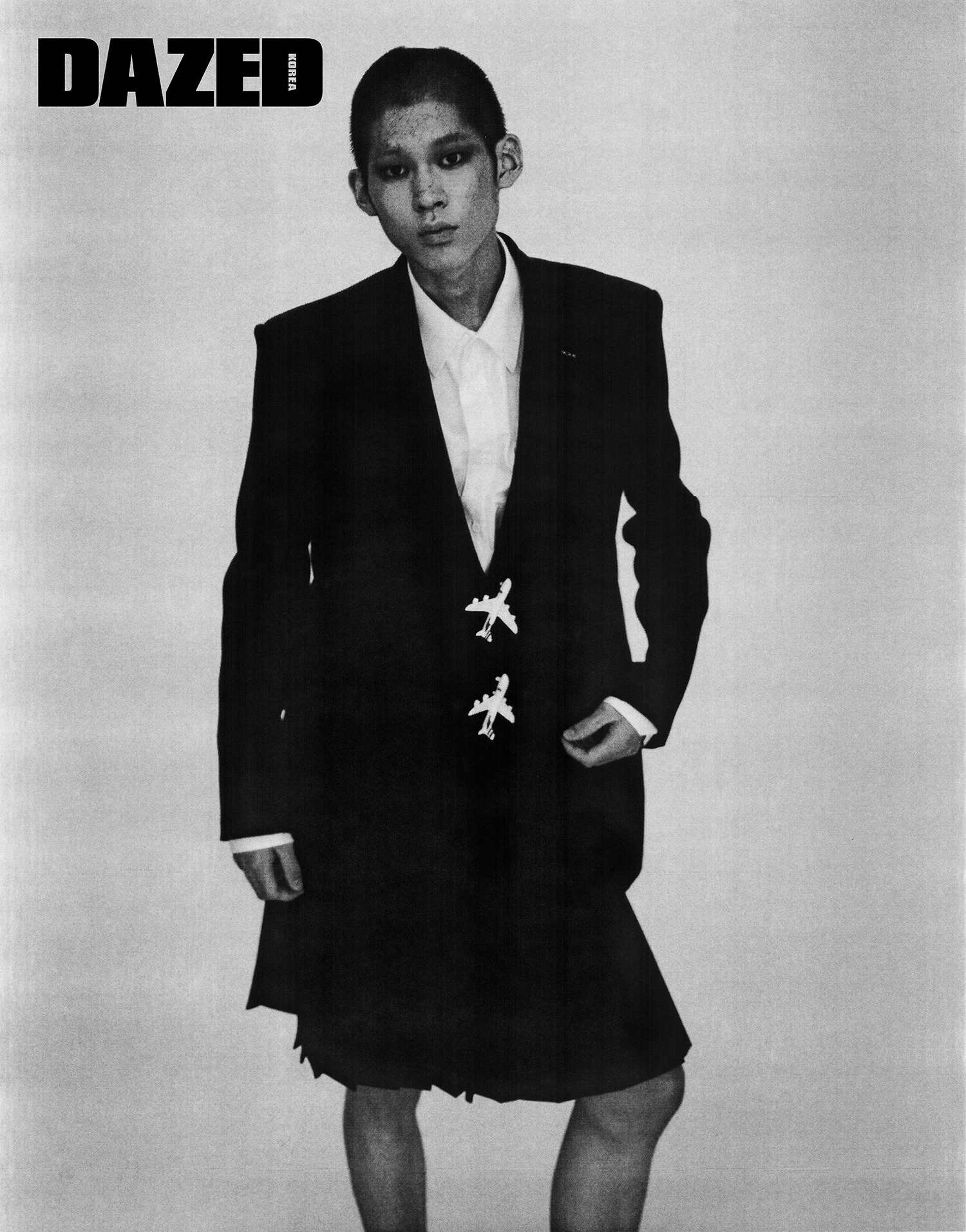 오버사이즈 재킷과 셔츠는 루이 비통(Louis Vuitton), 플리츠스커트는 이곤랩(Egon Lab).