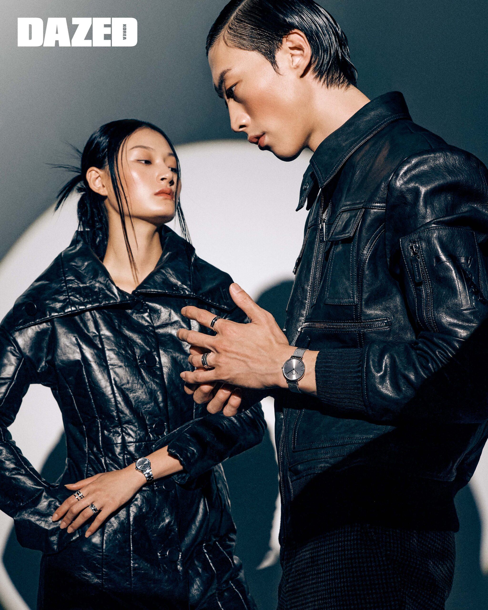 태민이 입은 재킷은 엔초비(Anchovi), 이너로 입은 셔츠는 COS. 서희가 입은 재킷은 엔초비(Anchovi), 이너로 입은 톱은 지초이(Jichoi).