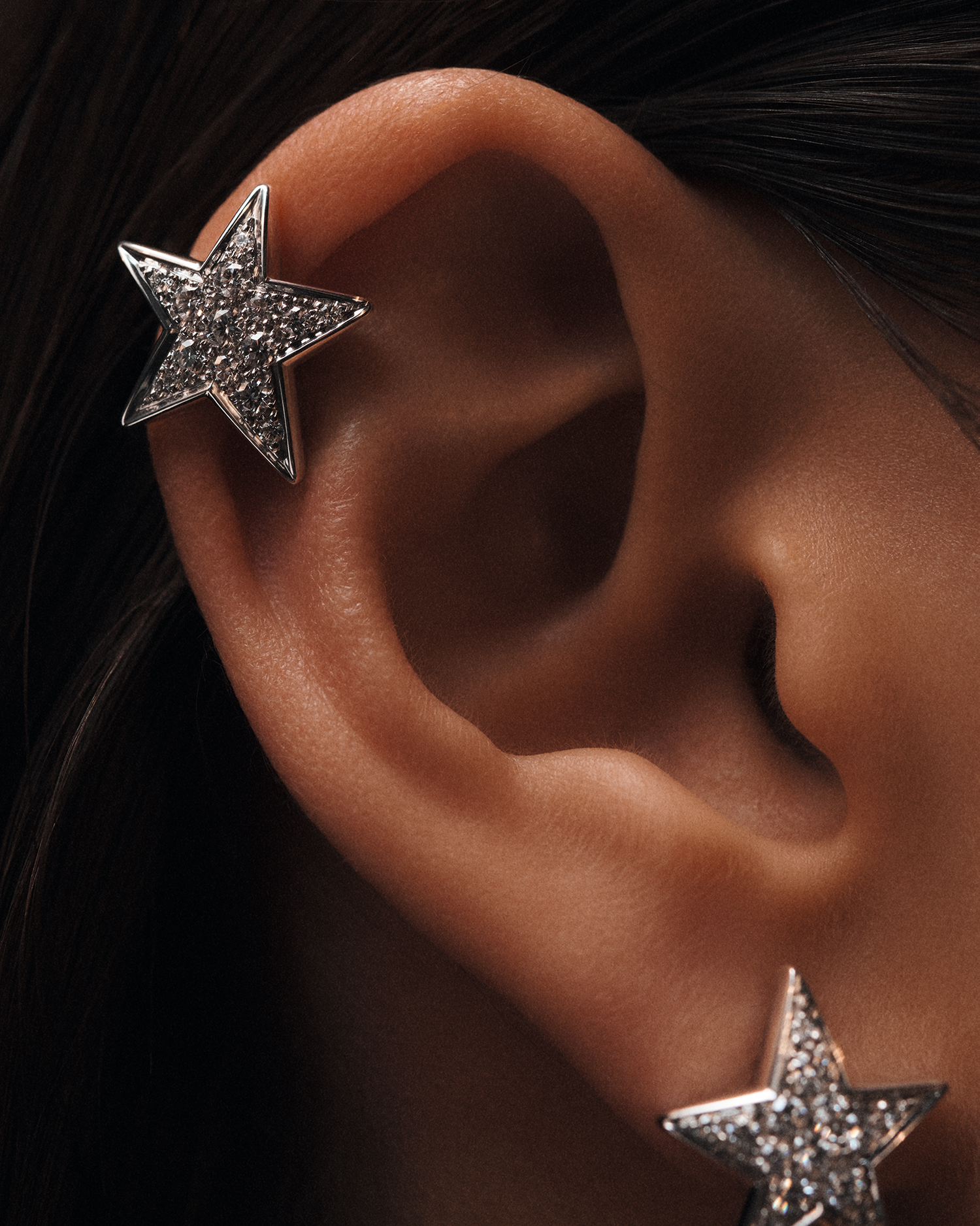 18K 화이트 골드와 다이아몬드로 이루어진 꼬메뜨 싱글 이어링은 샤넬(Chanel).