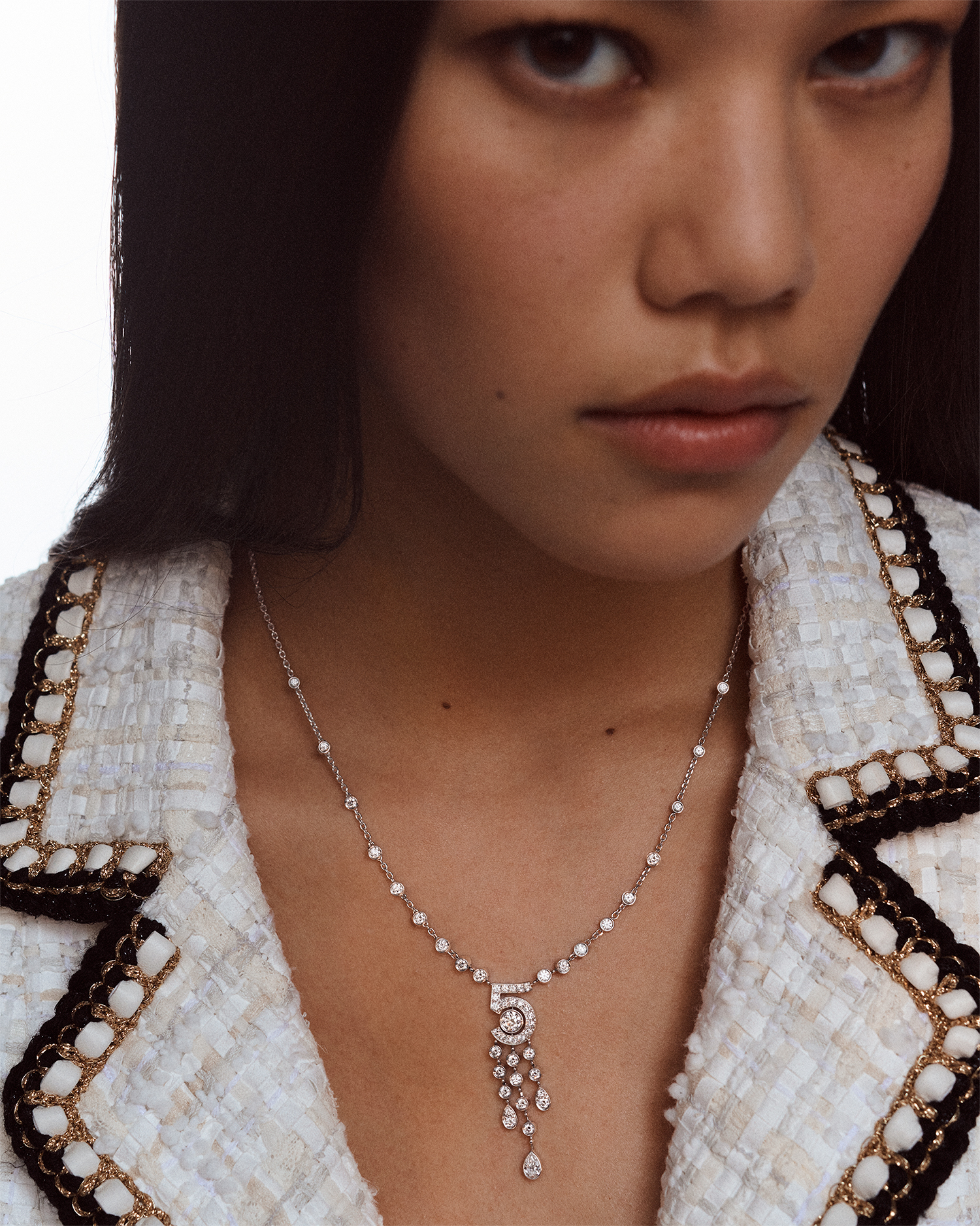‘넘버 5 컬렉션Eternal Number 5’ 라인은 전설적인 향수 넘버 5의 100주년을 기념하며 향수 한 방울을 주얼리로 표현한 것이 특징. 네크리스 길이를 조절하거나 여러 개를 레이어링해 착용하는 방식의 다양한 스타일로 연출이 가능하다. 또한 이터널 N 5 링의 숫자 5의 윤곽을 트레이싱해 하우스의 상징성이 돋보인다.
