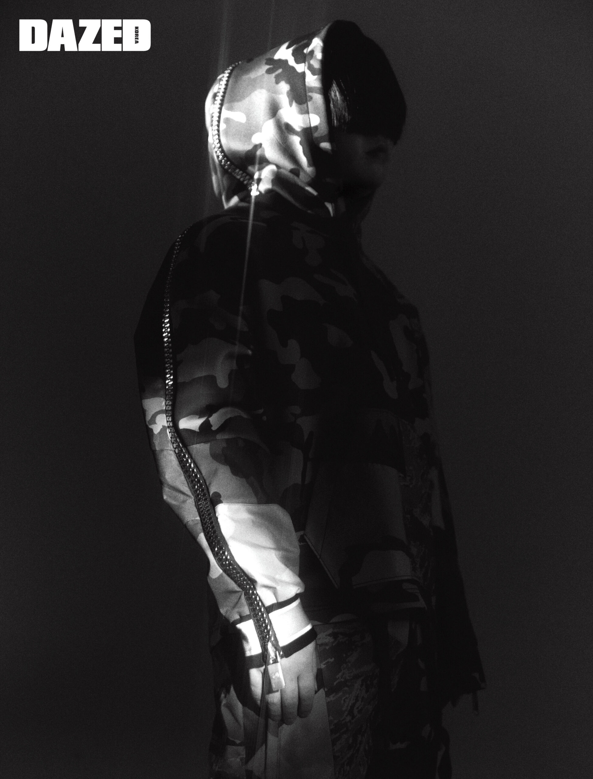 집업 디테일의 카무플라주 패턴 후디와 팬츠는 돌체앤가바나(Dolce&Gabbana).