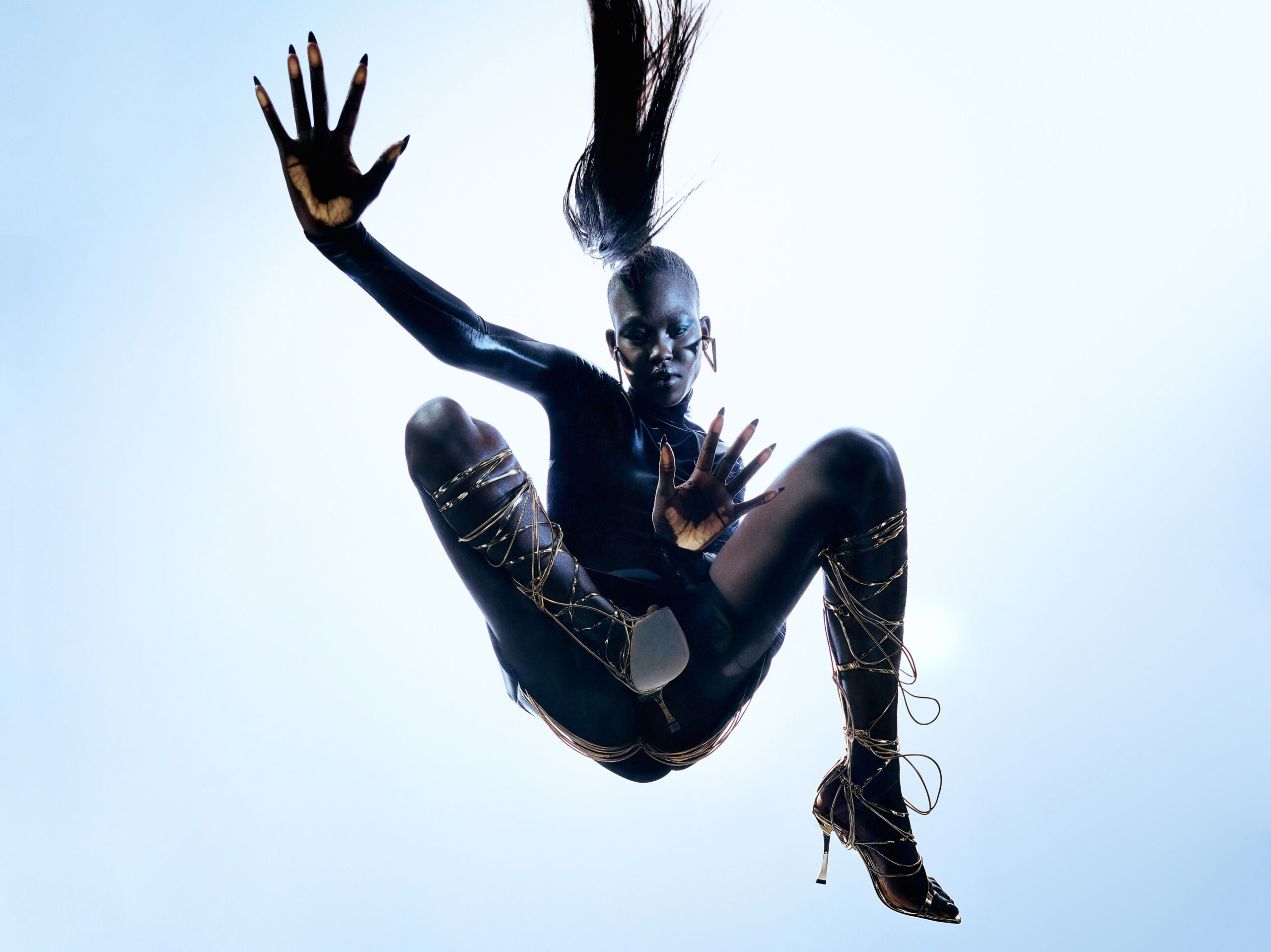 산드라 초이 신뢰, 존경심, 그리고 도전이죠. 케이시 캐드월라더 사실 저희는 지미추와 뮈글러의 정신을 동시에 제품에 담아내는 것에 대해 이미 같은 생각임을 확인했었죠. 하지만 슈즈의 토 부분이 얼마나 길어야 할까? 힐은 얼마나 높아야 할까? 이 라인은 어떻게 발을 아름다워 보이게 할까? 등 각각의 모든 요소들에 대한 탐색을 통해 항상 방향을 잡아왔죠. 우리는 정확한 50대 50이 어느 지점인지 아주 잘 알고 있어요. 우리는 우리가 할 수 있는 한 끝까지 밀어부치고자 했지만, 안전한 것도 고려했죠. JCXM SANDAL이 그런 경우죠. 그냥 크리스탈 볼과 앵클 스트랩 뿐이라고 볼 수도 있지만, 옆으로 돌려보면 힐 캡이 있고, 착용할 수 있는 슈즈가 있죠.