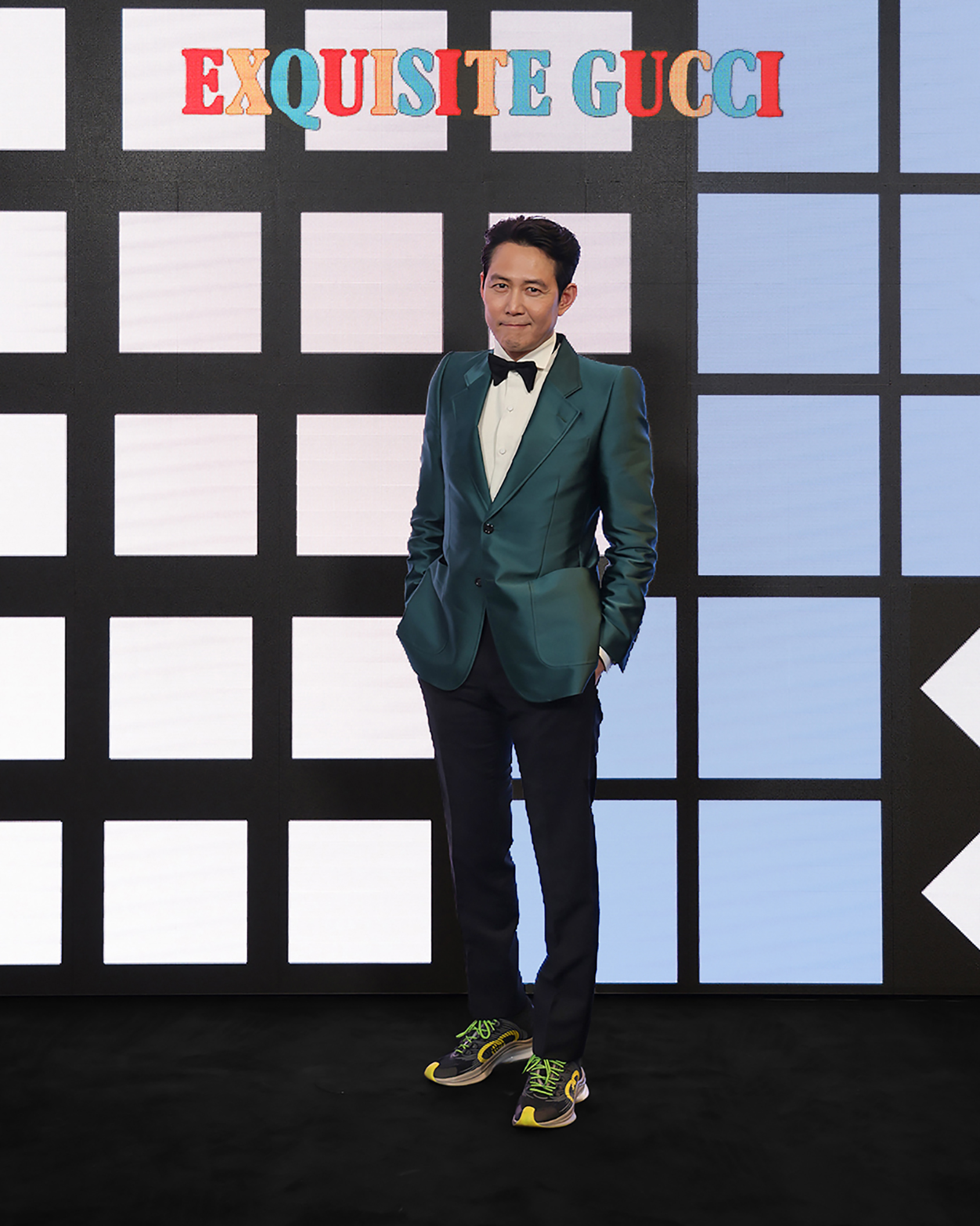 쇼 현장에는 구찌의 글로벌 앰버서더 이정재를 비롯해 뮤지션 리한나, 에이셉 라키, 배우 재러드 레토, 캘빈 해리슨 주니어 등이 참석해 자리를 빛냈다. 배우 이정재는 구찌 러브 퍼레이드 컬렉션의 그린 새틴 재킷과 화이트 포플린 셔츠, 블랙 파나마 모헤어 울 팬츠를 매치한 룩에 구찌 런 블랙 테크니컬 니트 스니커즈를 착용해 포인트를 더했다.