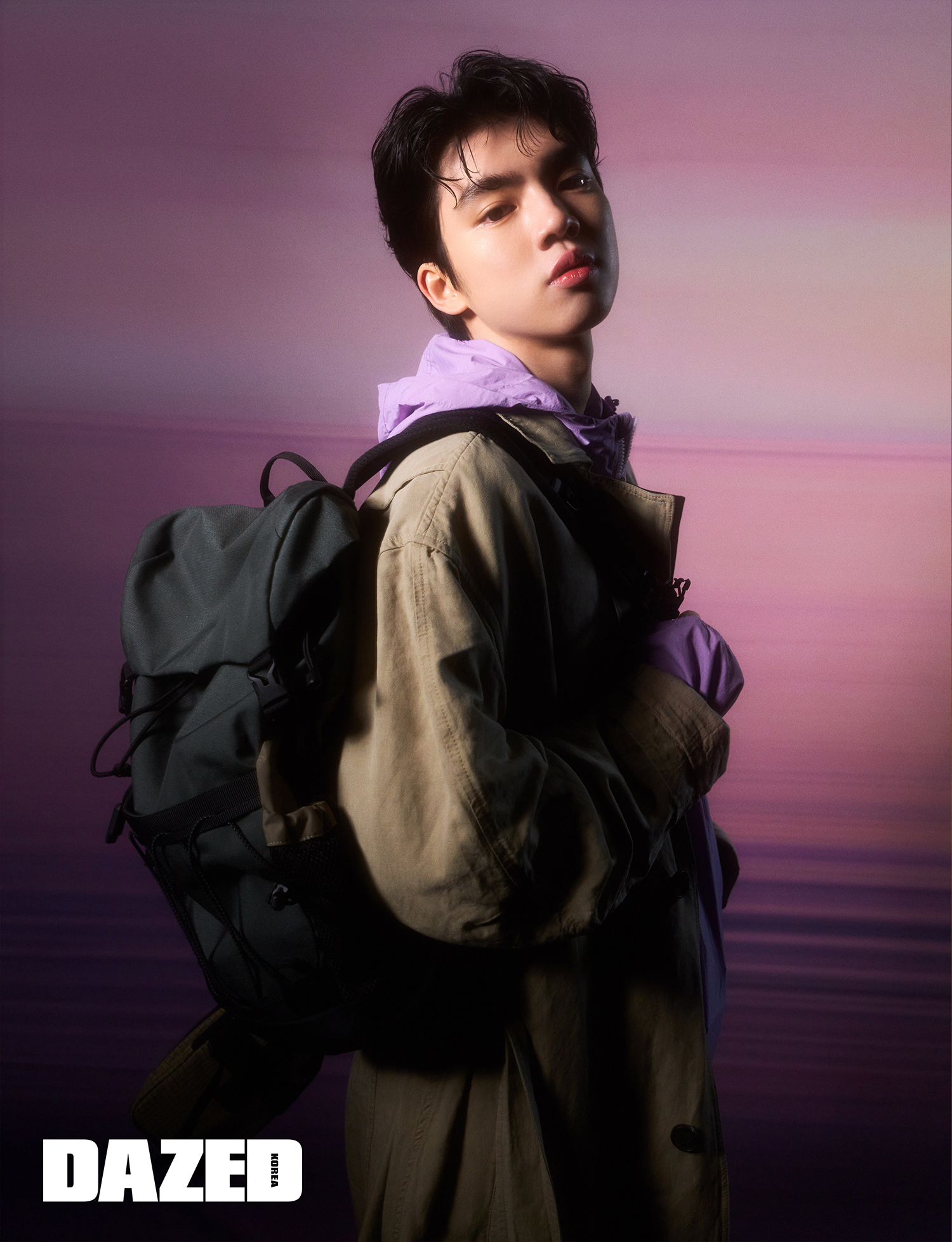 라벤더 컬러 바람막이와 백팩은 코오롱스포츠(Kolon Sport), 트렌치코트는 에디터의 것.