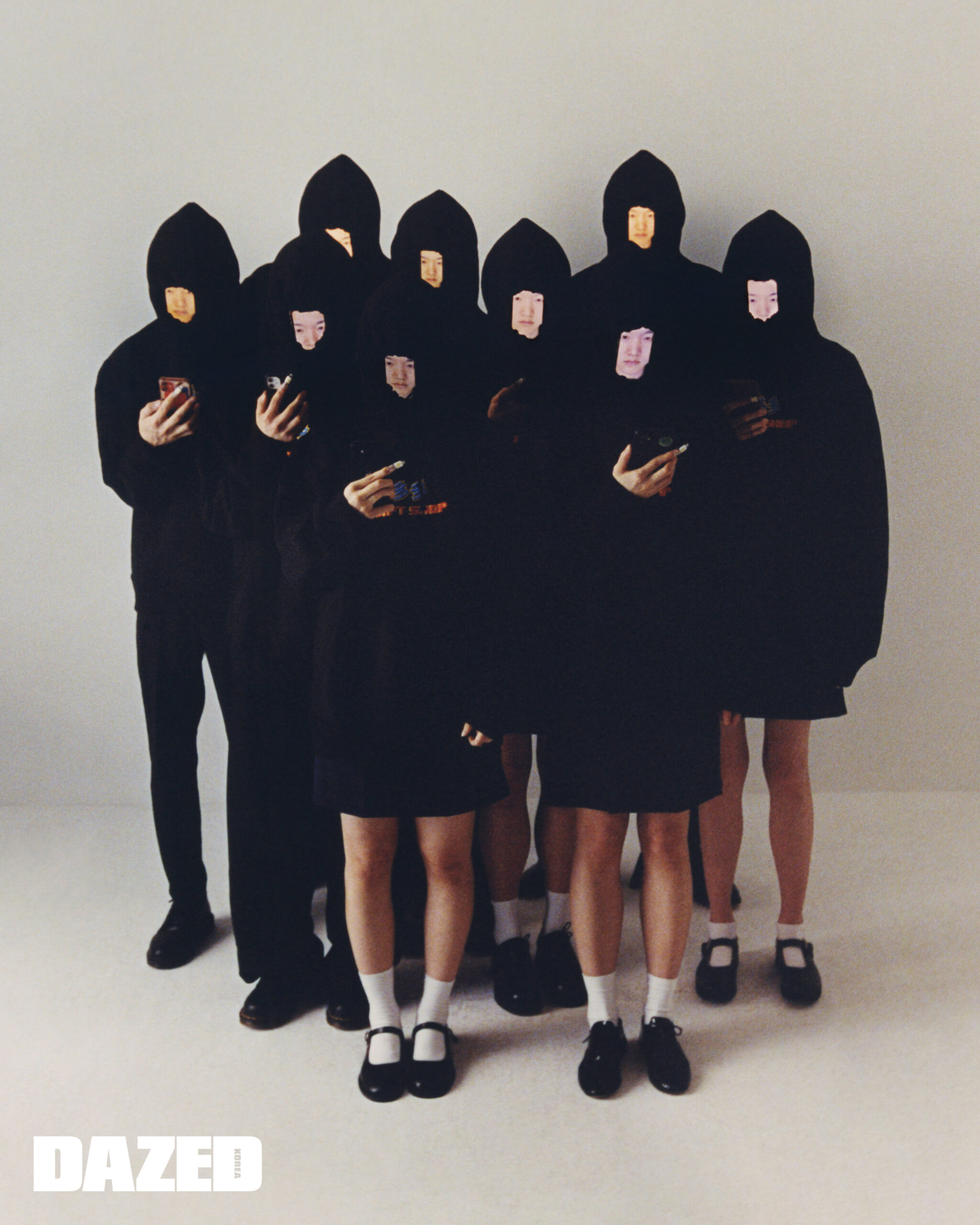 블랙 후디는 모두 다다서비스(Dada Service), 슬림 슈트 팬츠는 발루트(Ballute), 와이드 블랙 팬츠는 COS, 네이비 스커트는 미스치프(Mischief), 레이스업 로퍼는 닥터마틴(Dr. Martens), 스트랩이 얇은 메리제인 슈즈는 레이첼 콕스(Racheal Cox), 레이스업 로퍼와 스트랩이 볼드한 메리제인 슈즈는 처치스(Churchs), 에나멜 레이스업 로퍼는 레페토(Repetto).