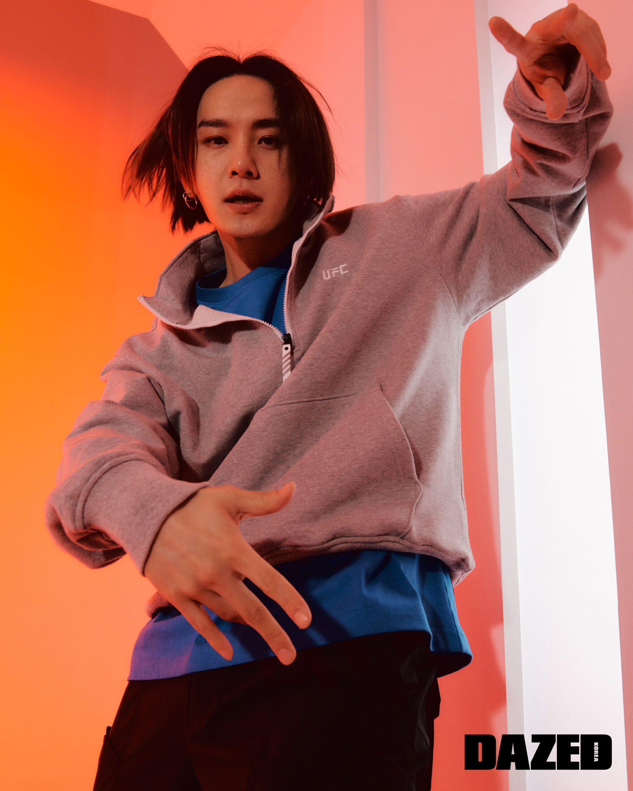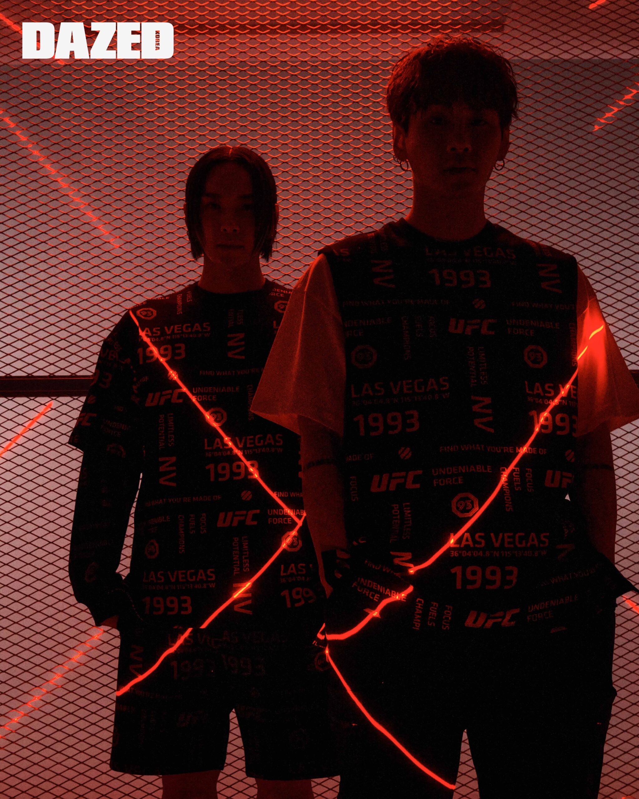 영돈이 입은 레터링 맨투맨 티셔츠(U2SWT1118 MG)와 레터링 반팔 티셔츠(U1LST1111 LG), 레터링 쇼츠(U2SPT1124 MG)는 모두 유에프씨(UFC), 삭스는 에디터의 것. 영득이 입은 UT글로스 보머 재킷(U1JKT1105 LG)과 글러브 하이브리드 트레이닝 톱(U2TTT1160 MG), 쇼츠(U1SPT1101 LG)는 모두 유에프씨(UFC).