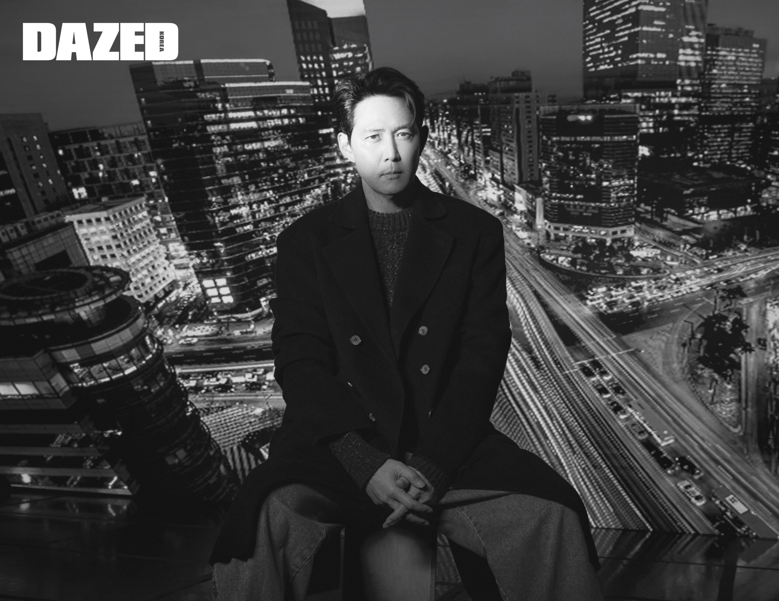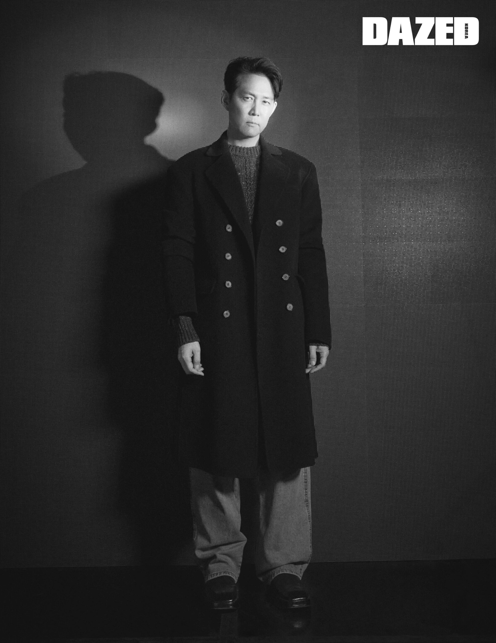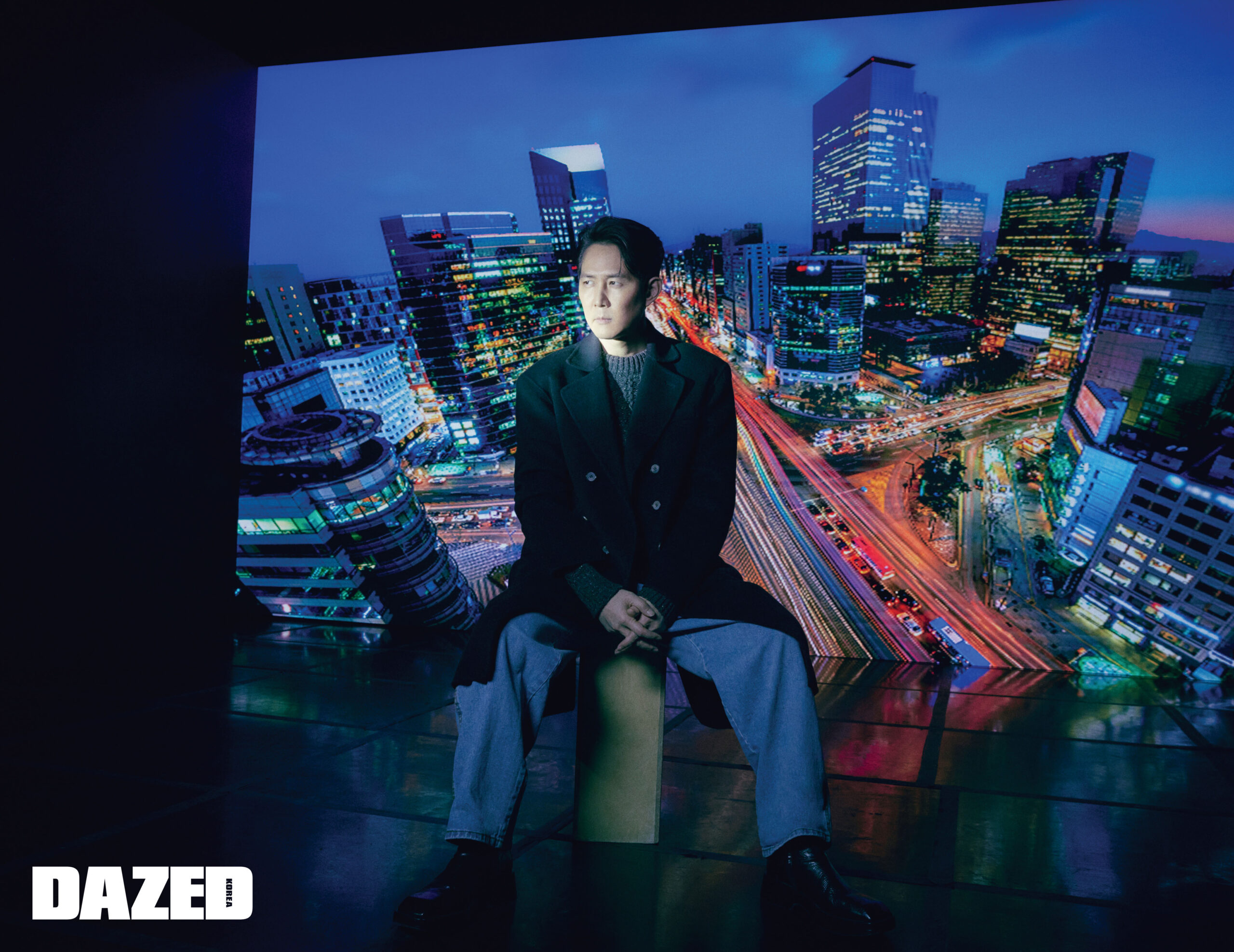 더블브레스트 코트와 니트, 데님 팬츠는 모두 노앙(Nohant), 슈즈는 스타일리스트의 것.