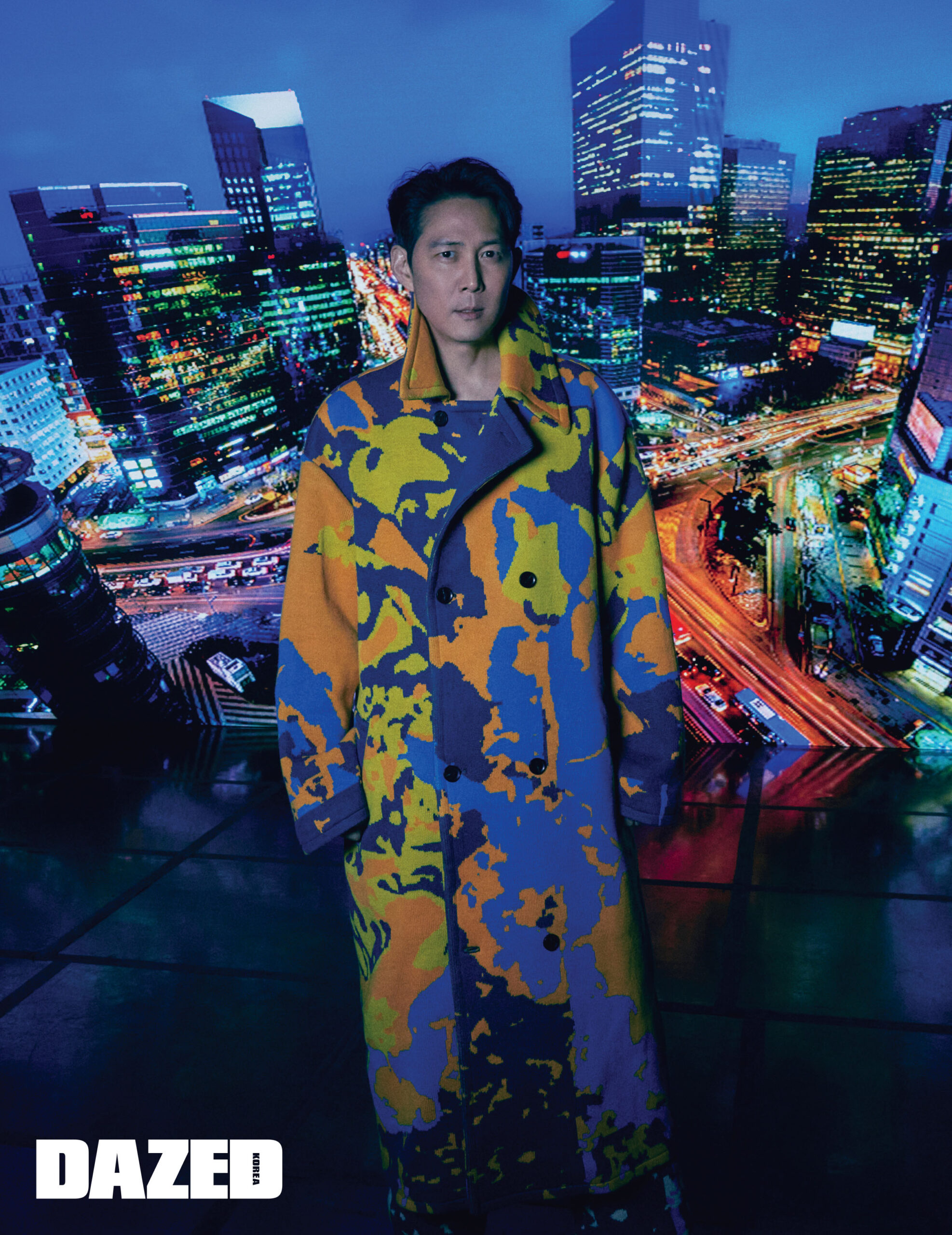 독특한 패턴의 멀티컬러 더블브레스트 코트는 석운윤(Seokwoon Yoon).