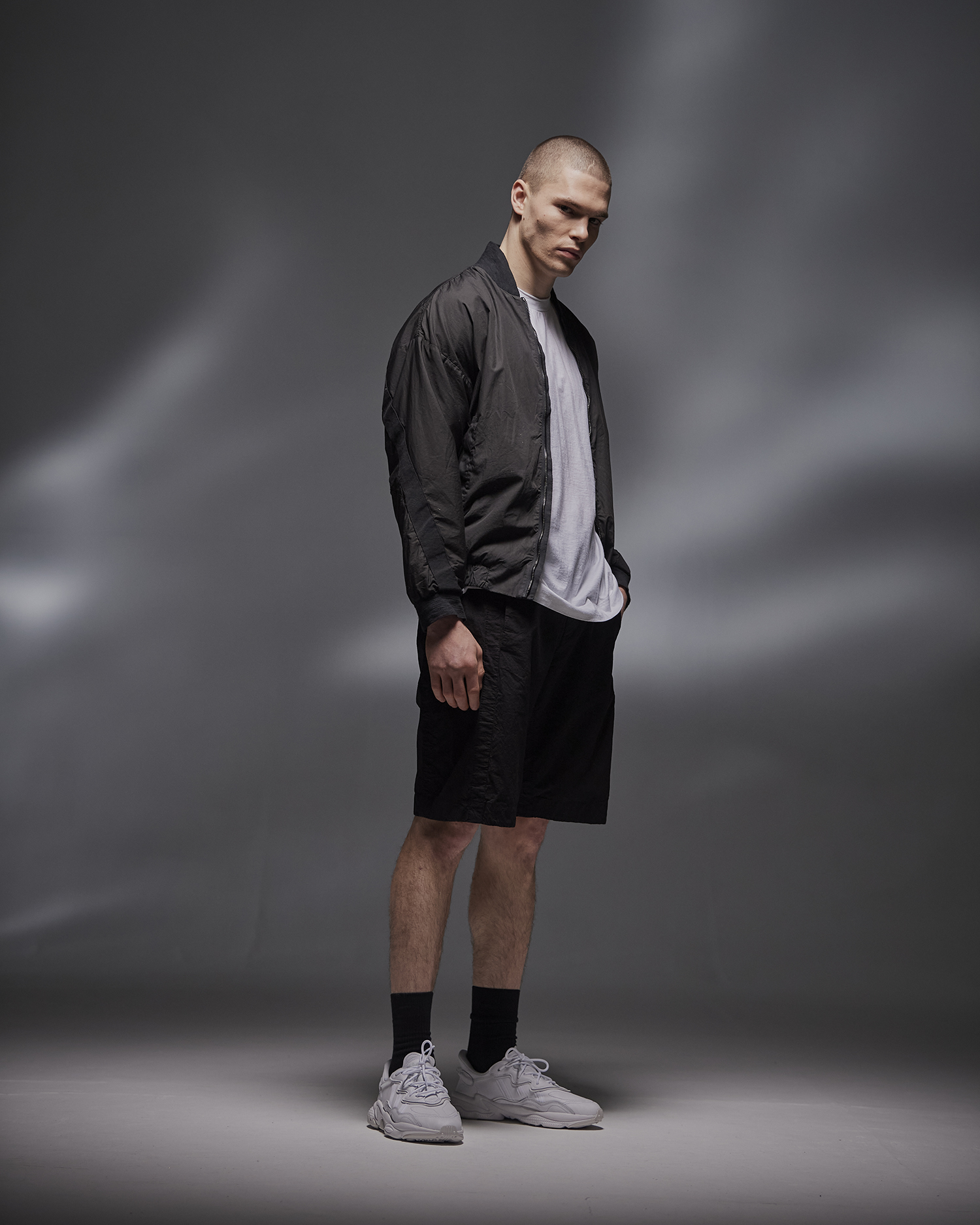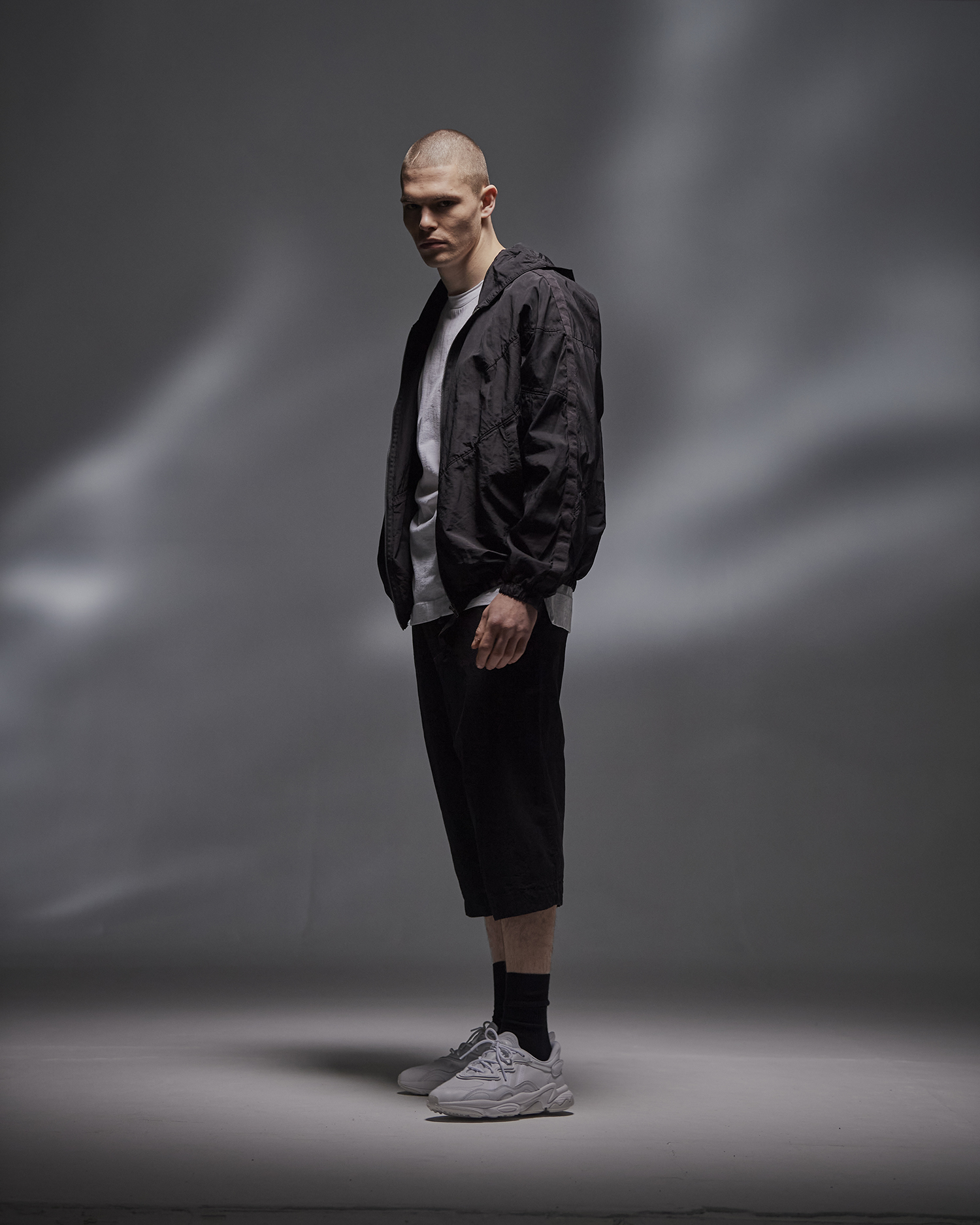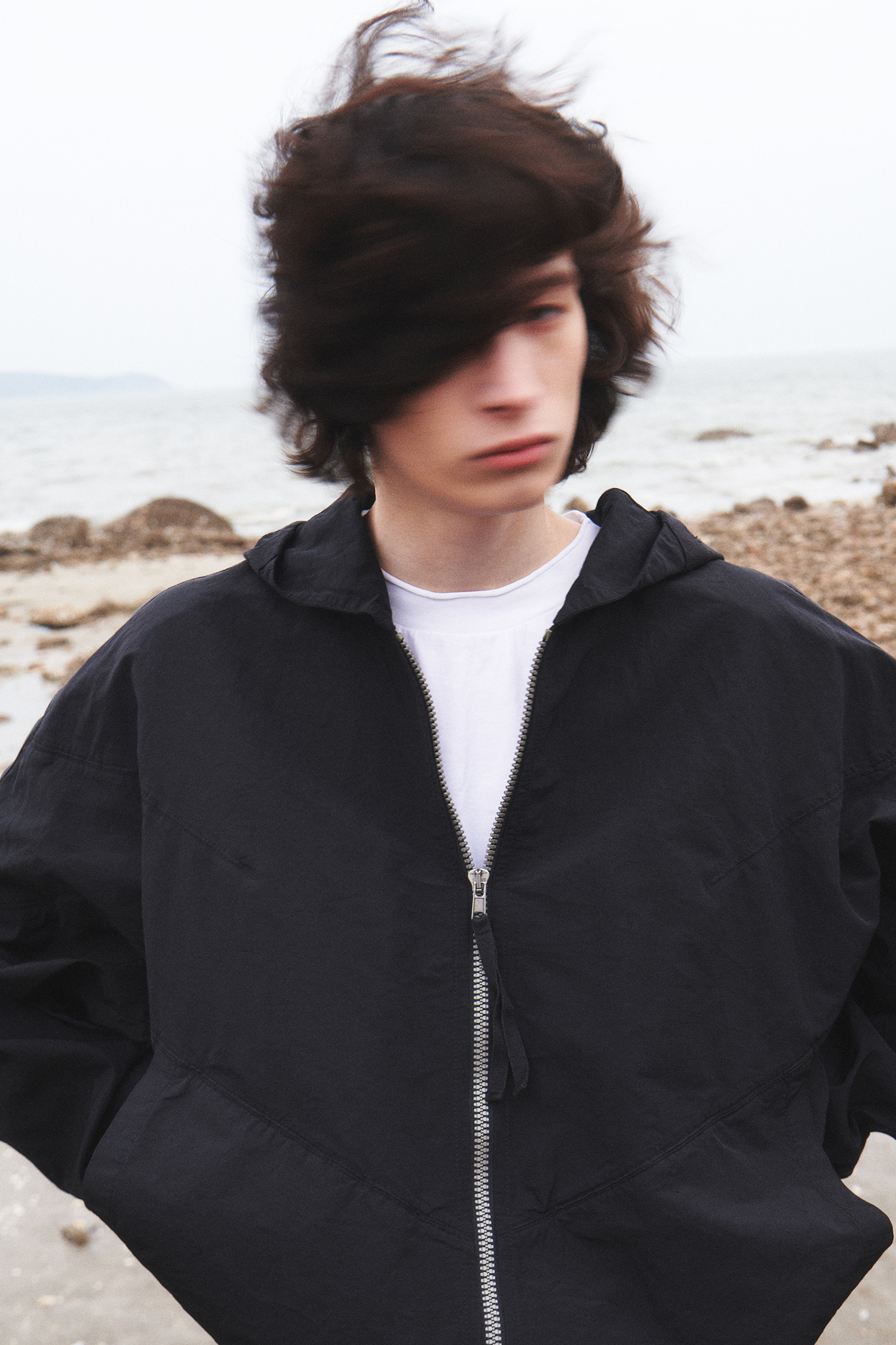 나일론과 마 혼방 소재의 후드 재킷으로 환절기에 가볍게 걸치기 좋은 아이템. 편안한 착용감과 오버사이즈 실루엣으로 캐주얼한 코디가 가능하다.
