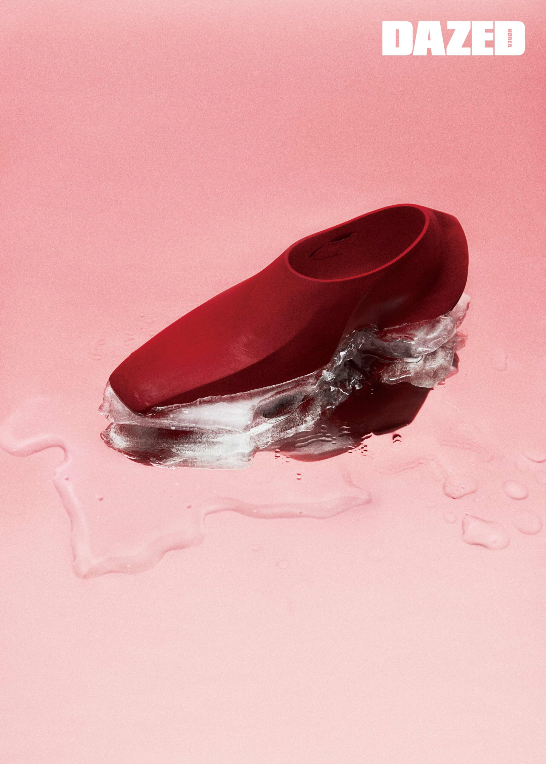 싱글 몰드로 제작한 매트 레드 컬러의 러버 스페이스 슈는 발렌시아가(Balenciaga).