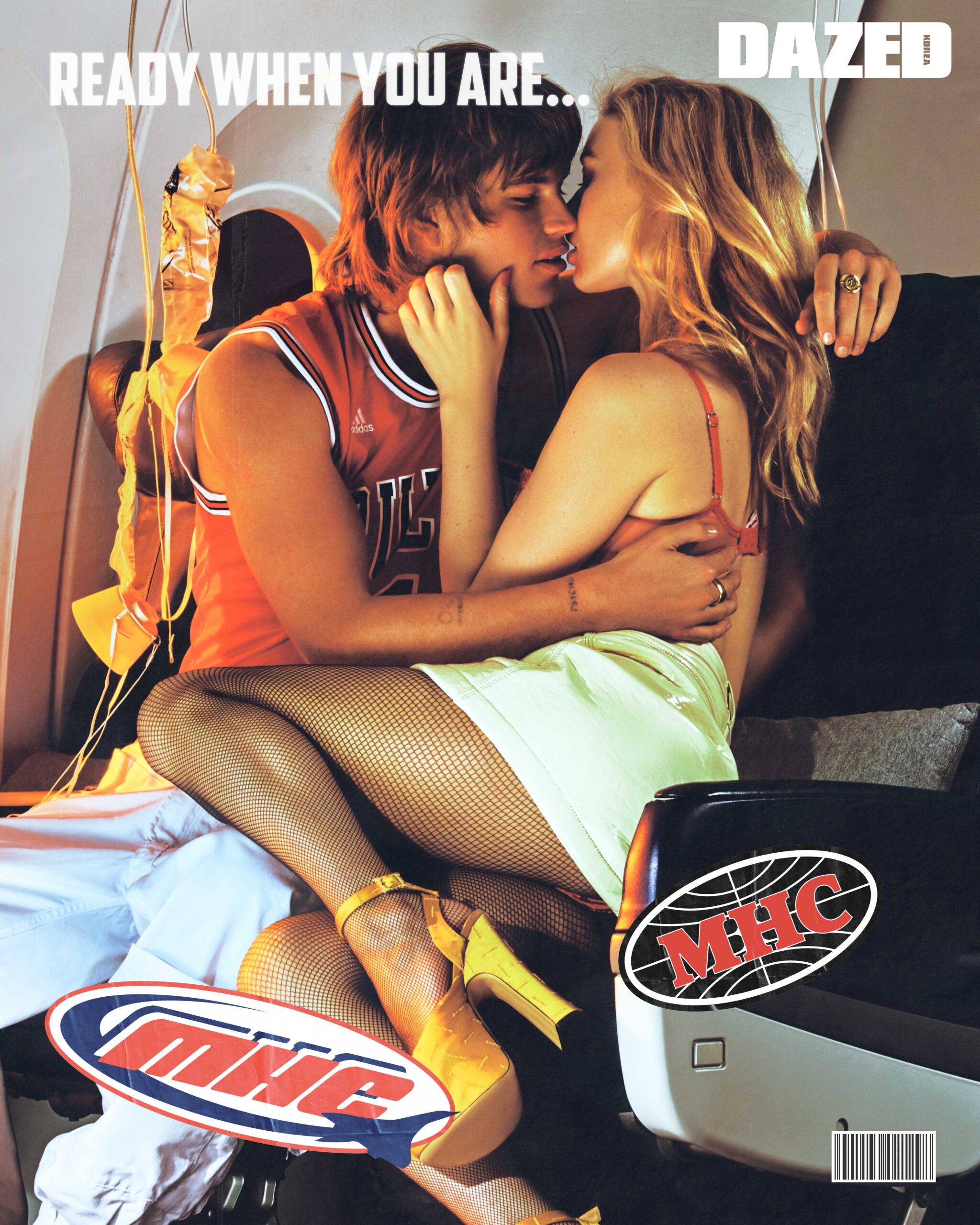 조단이 입은 트랙 팬츠는 루이스 레더(Lewis Leathers), 바스켓볼 슬리브리스 저지 톱은 스타일리스트의 것, 모든 링은 본인의 것. 조지아가 입은 브라와 T팬티 셋업은 도라 라슨(Dora Larsen), 스커트는 디젤(Diesel), 옐로 플랫폼 힐은 비비안 웨스트우드(Vivienne Westwood), 네트 타이츠는 팔케(Falke).
