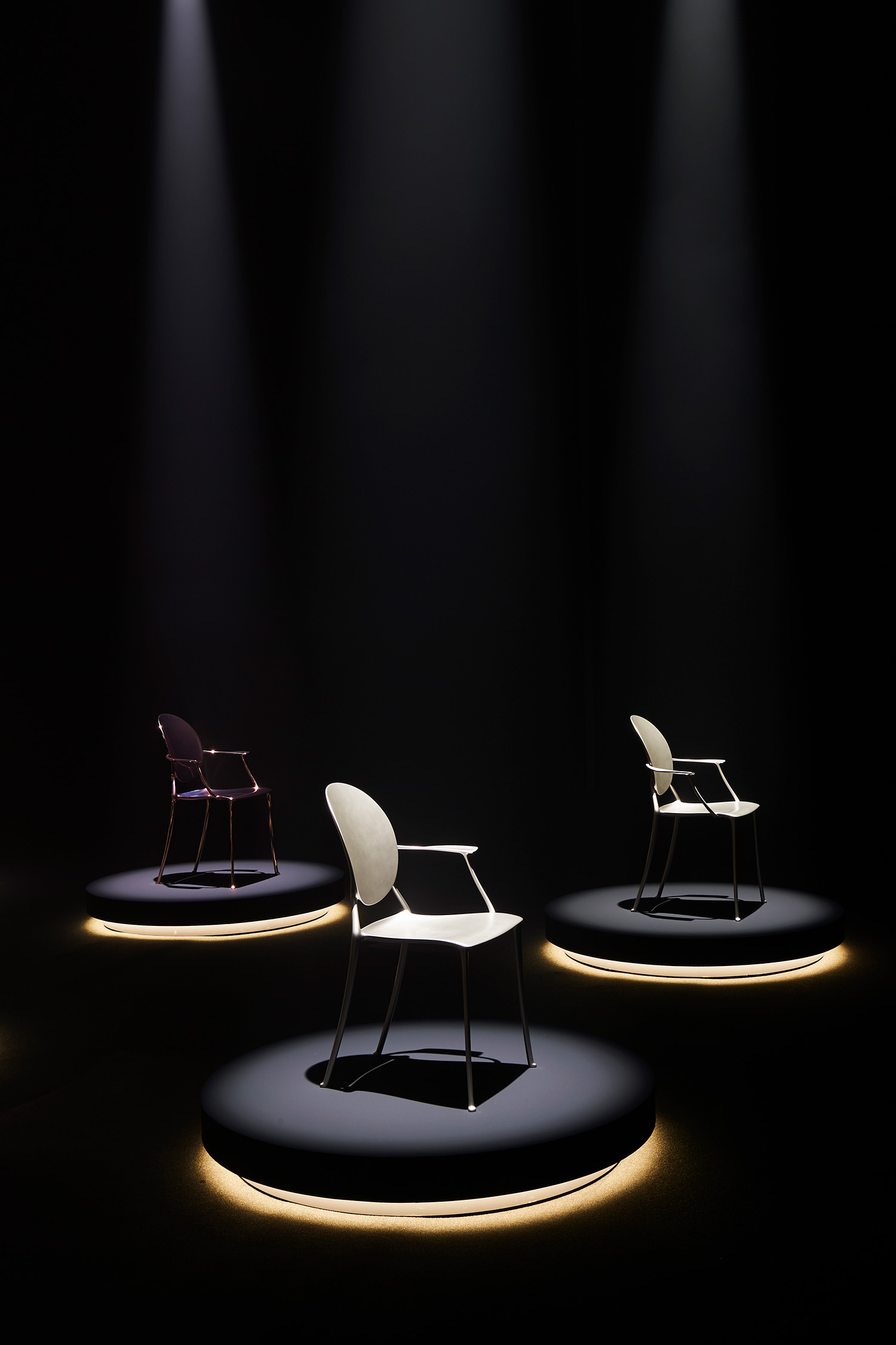 디올 하우스 헤리티지로 재해석한 메달리온 의자는 프랑스를 대표하는 산업 디자이너 필립 스탁과 협업해 완성했다. 평소 ‘미니멀리즘적 열정’을 지향하는 필립 스탁은 메달리온 의자의 고급스러움과 내구성은 그대로 유지하되 의자 구조의 궁극적 본질인 실루엣을 가벼운 알루미늄으로 간결하게 표현했다.