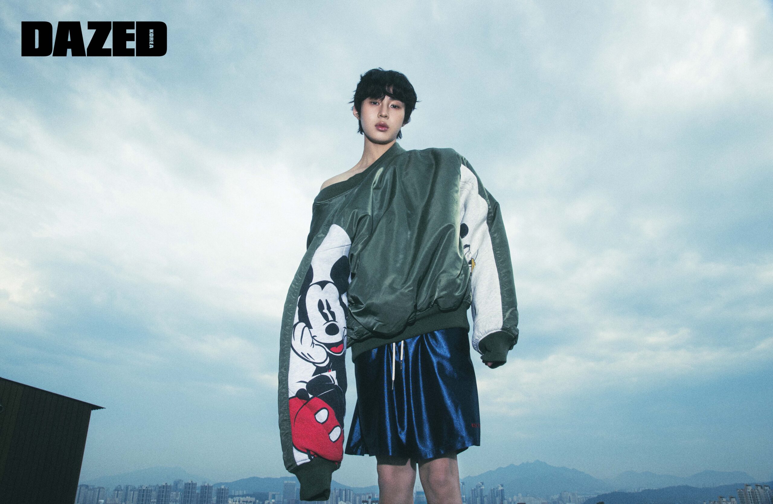 오버사이즈 리메이크 MA-1 보머 재킷은 마더스 파더 by 무이(Mother’s Father by Mue), 네이비 쇼츠는 서커스폴스(Circusfalse).
