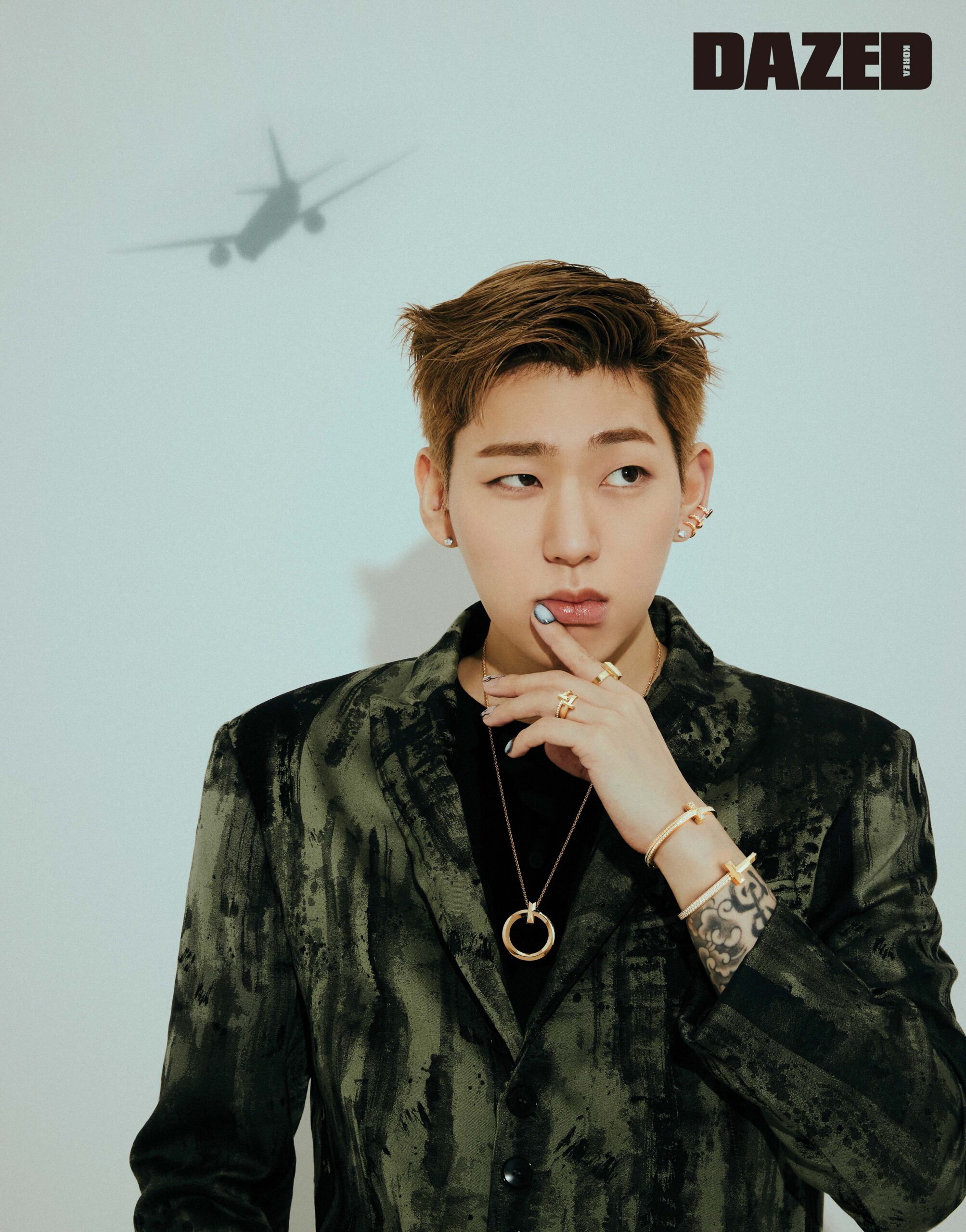 아닌 게 아니라 티파니와 지코의 합에서 상당한 질량의 새로움을 감지할 수 있다. 힙합 특유의 시니컬한 감성과 티파니의 해사함 사이의 간극을 중화하는 존재는 어쩌면 지코가 유일무이한지도. “티파니 화보를 제안받았는데, 한 치의 망설임도 없이 하기로 결정했어요. 모든 걸 차치하고 브랜드를 대표하는 시그너처 컬러인 ‘티파니 블루’가 정말 인상적이었거든요. 컬러라는 단일 요소로 브랜드의 많은 것을 설명할 수 있다는 사실이 신선한 충격이었어요. 티파니 주얼리가 힙합이 추구하는 감성과는 다소 거리가 있다고 여길 수 있지만, 저는 정통 힙합보다는 댄스 팝 등 얼터너티브 장르를 오가니까요. 추구하는 다채로움에서는 저 와 티파니 사이에 접점이 있다고 생각해요.”