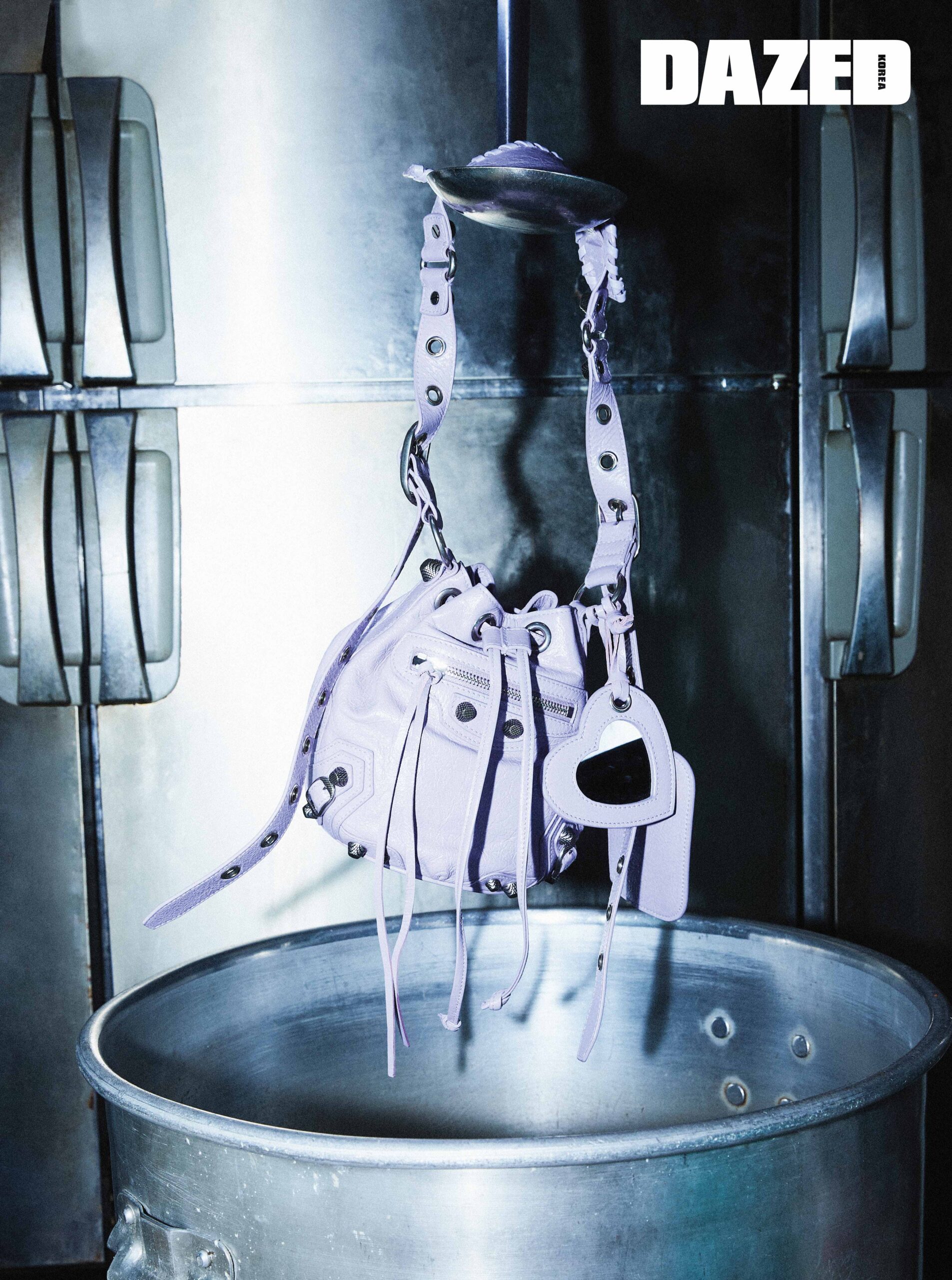 라이트 퍼플 컬러의 르카골 버킷 백은 발렌시아가(Balenciaga).