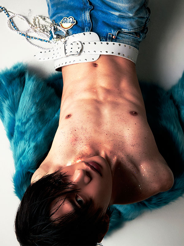 스튜디오 픽스 쿠션을 내장된 퍼프로 얼굴에 펴 발라 매끈한 피부 표현을 완성한다. 파우더 키스 소프트 매트 아이 섀도우 웍,웍,웍을 눈두덩과 애굣살에 발라 음영을 주고 대즐섀도우 리퀴드 블링킹 브릴리언트를 눈가에 러프하게 찍어 발라 반짝임을 더한다. 입술에 파우더 키스 벨벳 블러 슬림 스틱 891 멀 잇 오버를 베이스로 바른 후 파우더 키스 벨벳 블러 슬림 스틱 890 와일드 수맥을 입술 안쪽부터 그러데이션해 바른다. 다양한 펄 피그먼트가 섬세한 반짝임을 선사하고 가볍고 오래 밀착되는 리퀴드 섀도 대즐섀도우 리퀴드 블리킹 브릴리언트 4.6g 3만8000원대, 부드럽게 발리는 벨벳 텍스처로 피그먼트가 풍부하게 함유되어 선명하게 발색되는 파우더 키스 벨벳 블러 슬림 스틱 891 멀 잇 오버 2g 3만9000원대, (M.A.C).