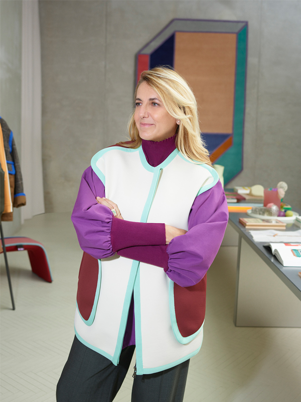 핑크 헤어 프린트 오버사이즈 티셔츠는 2000아카이브스(2000Archives), 레더 소재의 랩스커트는 릭 오웬스(Rick Owens), 레이어링한 샤 스커트는 와이씨에이치(YCH), 달마티안 백은 모스키노(Moschino).