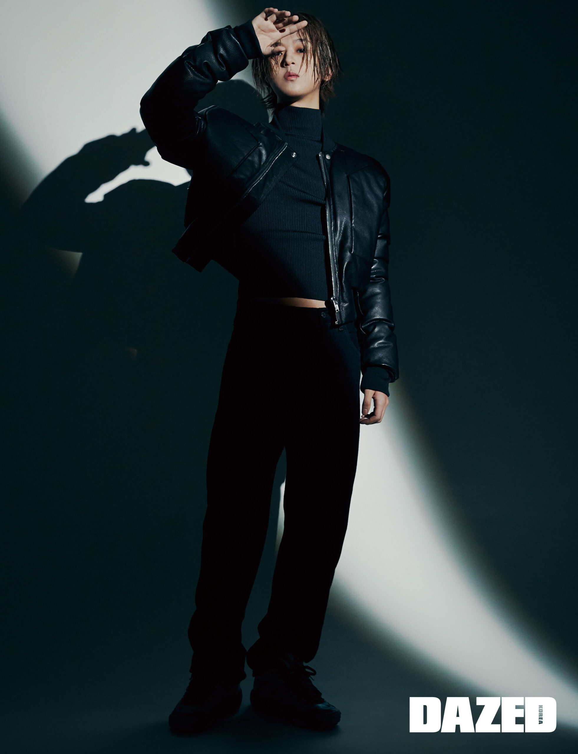 레더 재킷은 보테가 베네타(Bottega Veneta), 이너로 입은 톱은 더오픈 프로덕트(TheOpen Product).