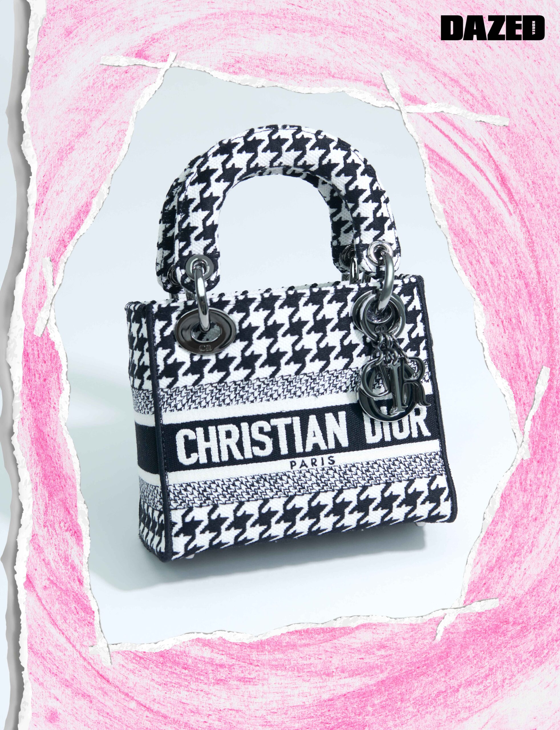 하운즈투스 체크 패턴의 클래식한 느낌을 끌어올리기 위해 자수로 제작한 미니 사이즈 레이디 디 라이트(Lady D-Lite) 백은 디올(Dior).