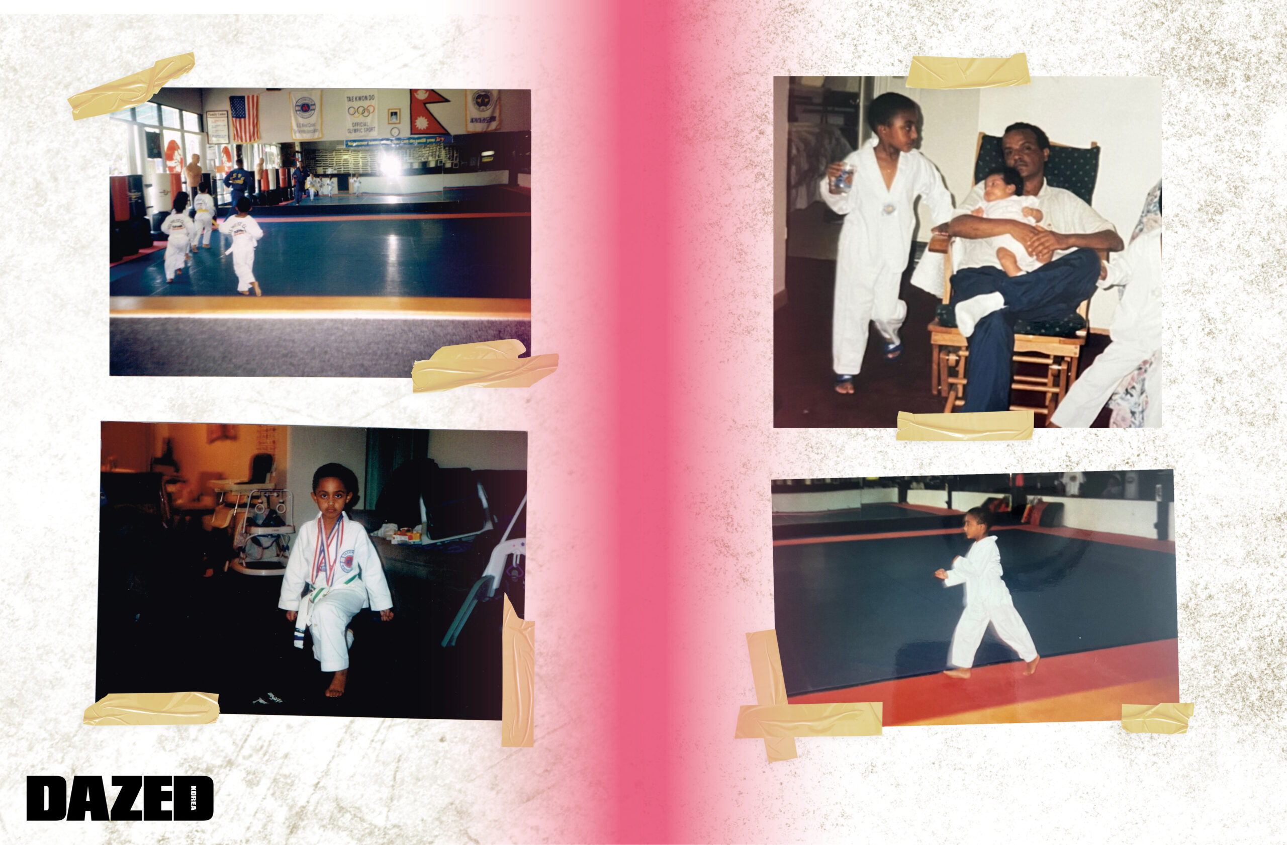 내가 8세인가 10세였을 때다. 자신감이 넘치던 아이가 아니었는데 태권도를 시작하고 훨씬 용감해졌다. 솔직히 내가 태권도를 통해 얻은 것은 태권도를 하며 가져야 할 존경심과 명예로움이었다. 나는 선생님께 절을 해야 했고, 그 시간에 잡담을 했다면 선생님은 고함을 쳤을 것이다. 잘못을 저질렀을 때 벌받는 행위가 오직 ‘방과 후 남기’였다면, 그걸 넘어서는 이 극도의 엄격한 분위기를 나는 좋아했다(당시엔 반기지 않았지만 지금 와 생각해 보면 기억에 남고 현재 내 삶에 어떤 영향을 미쳤는지 무의식적으로 깨닫는다). 또 내가 태권도를 좋아하는 이유는, 많은 각목을 격파하고 첫 번째 트로피를 차지했기 때문이다. 처음은 늘 강렬하다. 은메달, 동메달, 금메달을 1개씩 순서대로 얻었다. 그것들을 찾아야겠다. 지금은 어디있는지 모르겠다.(미소)