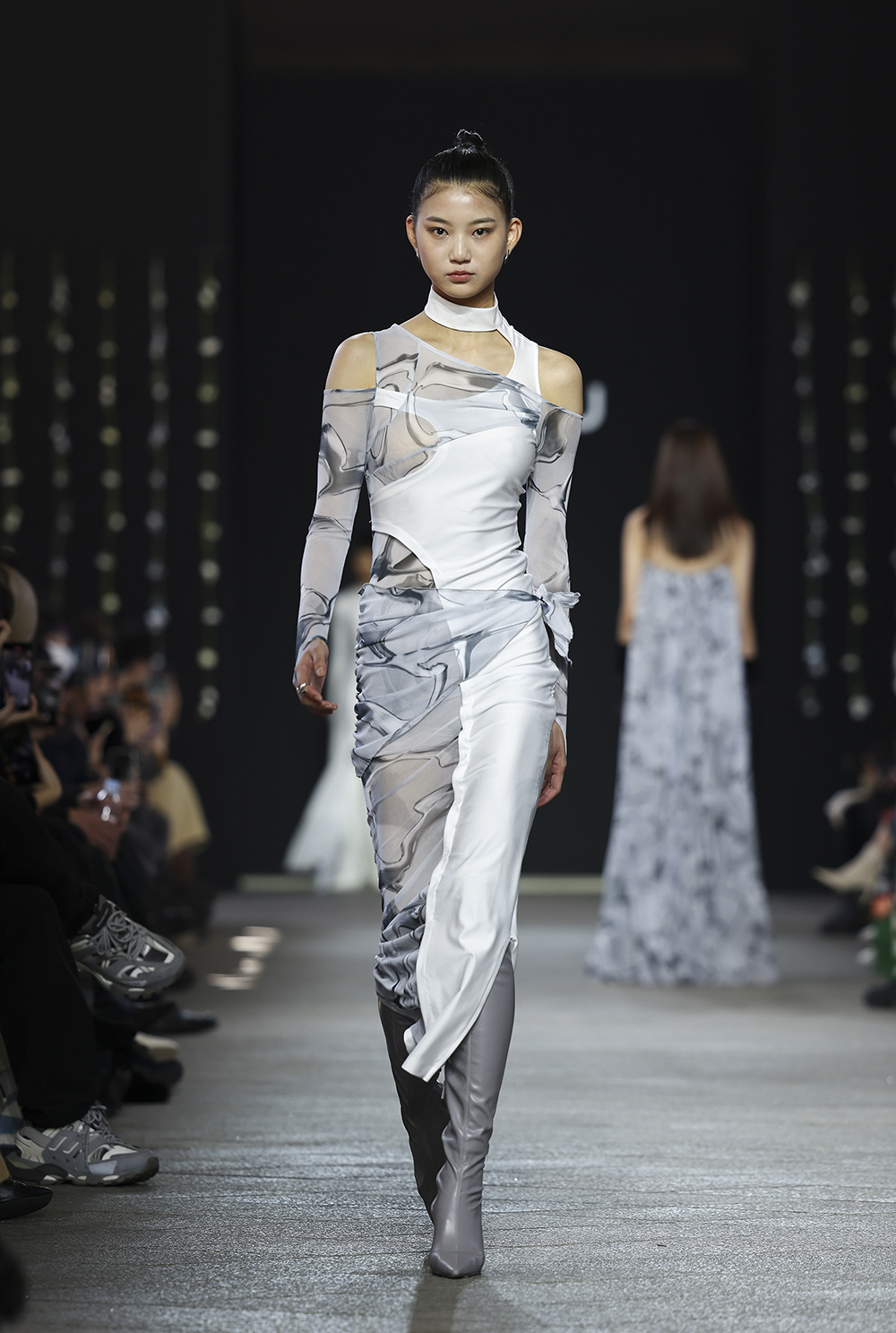 가림으로써 제 의무를 다하던 기성 의복을 지양하듯 옷의 많은 부분을 잘라내버린 ‘킴지수’와 ‘지민리’. 각 브랜드의 디자이너 김지수와 이지민은 한 사람이 가진 개성을 컷아웃 디테일로 해석했고, 그 과정에서 되려 클래식한 실루엣의 의복을 사용해 그들이 가진 과감성을 표현했다.