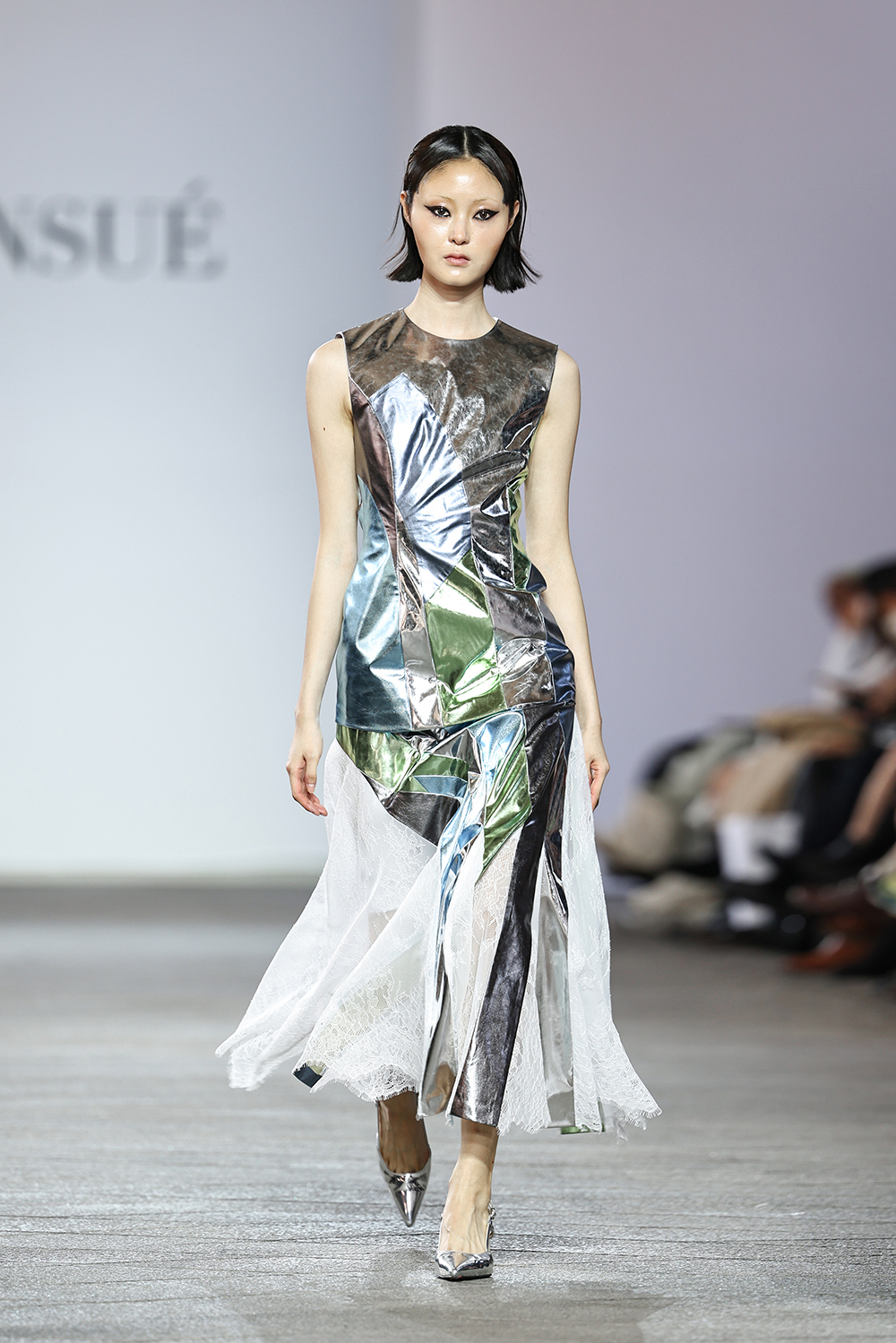 컷아웃에 이어 홍우성 디자이너의 ‘어나니마우스’와 황은수 디자이너의 ‘엔수에’는 레트로 무드에 기반한 패치워크를 통해 이목을 끌었다. 해진 옷을 기워 입는다는 개념에서 시작한 패치워크는 그 의미가 지속 가능성까지 맞닿았으며, ‘어나니마우스’와 ‘엔수에’는 컬러 혹은 텍스처를 통해 패치워크 디테일을 완성했다.