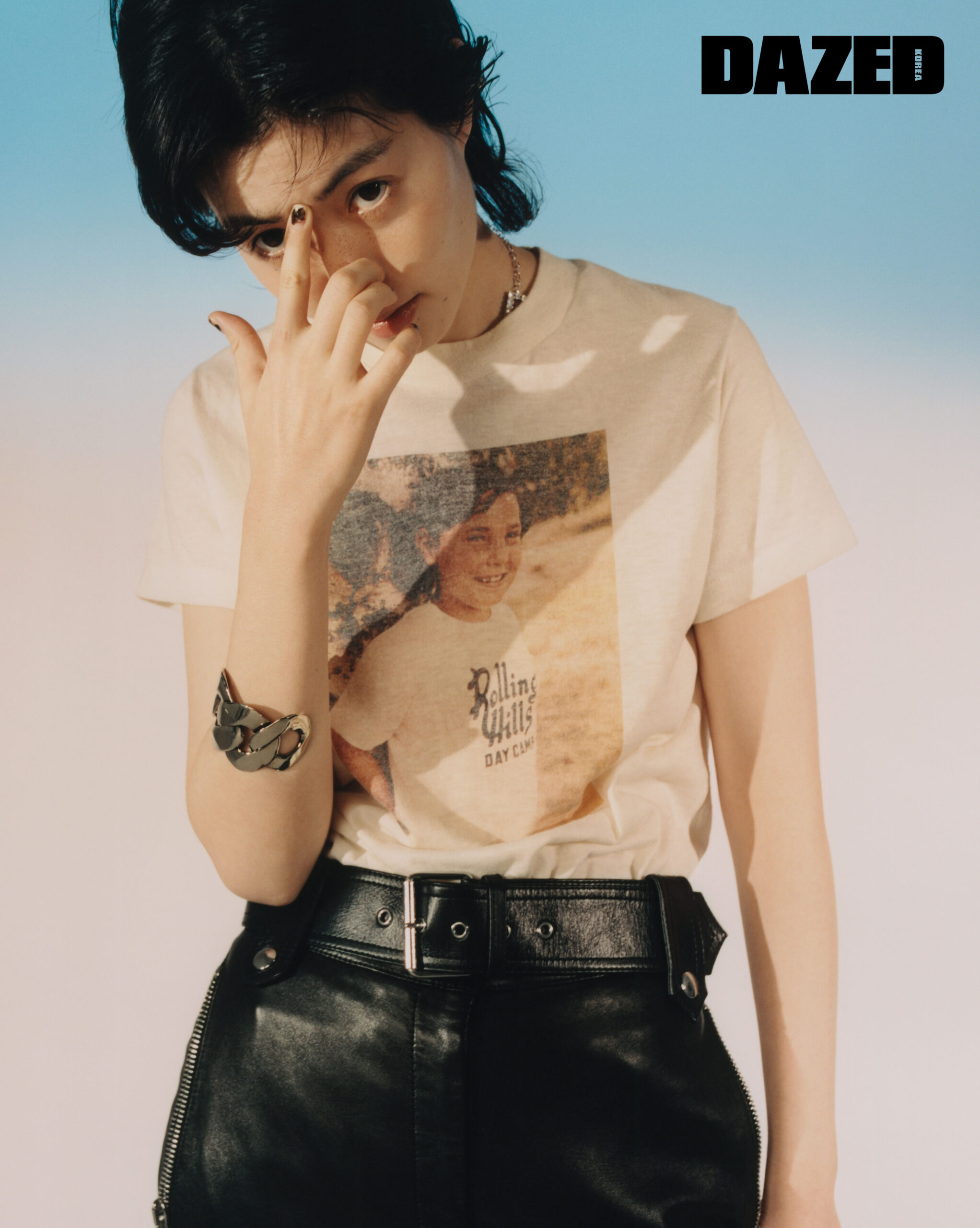 레더 팬츠와 실버 뱅글은 알렉산더 맥퀸(Alexander McQueen), 네크리스는 펜디(Fendi), 빈티지 티셔츠는 에디터의 것.