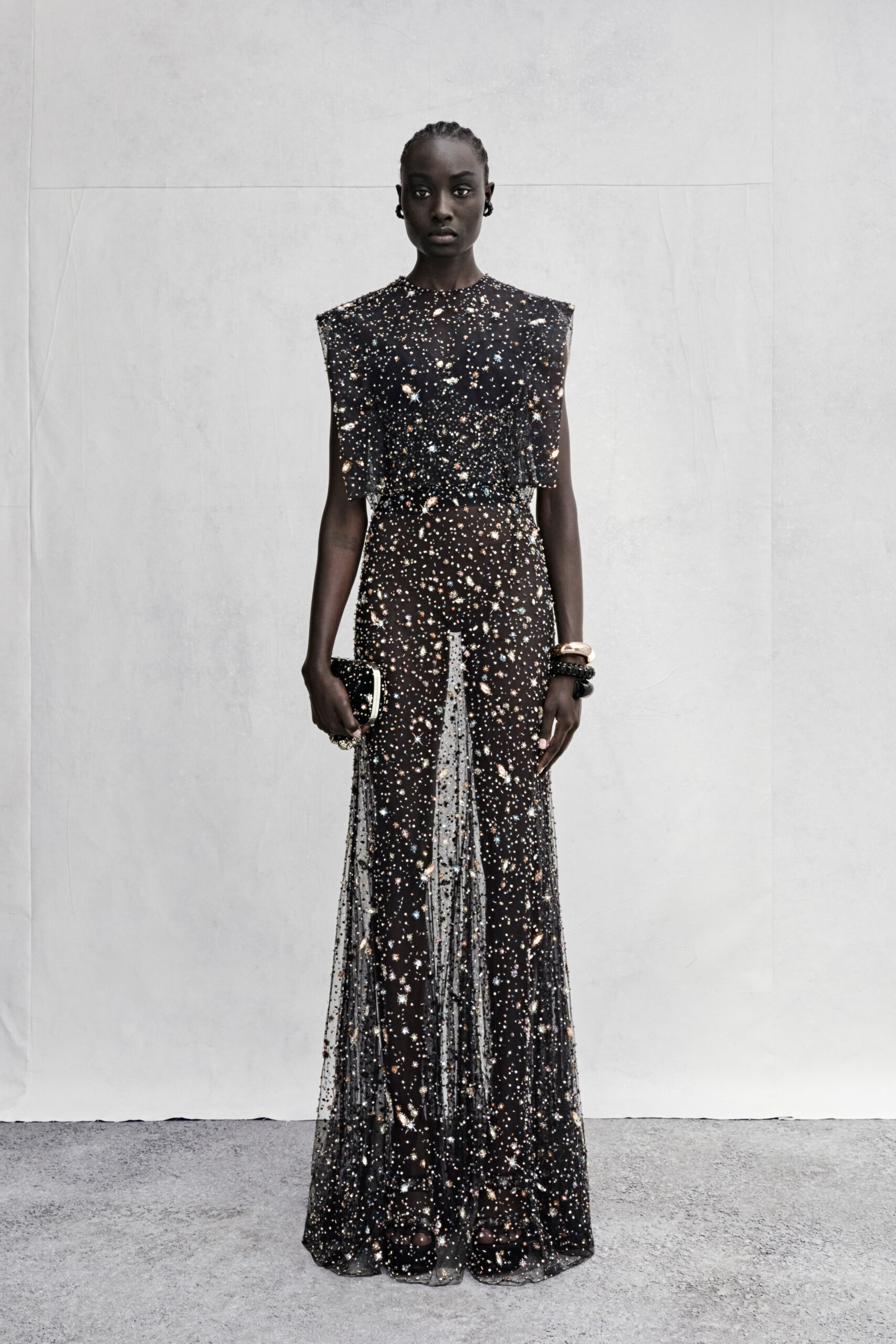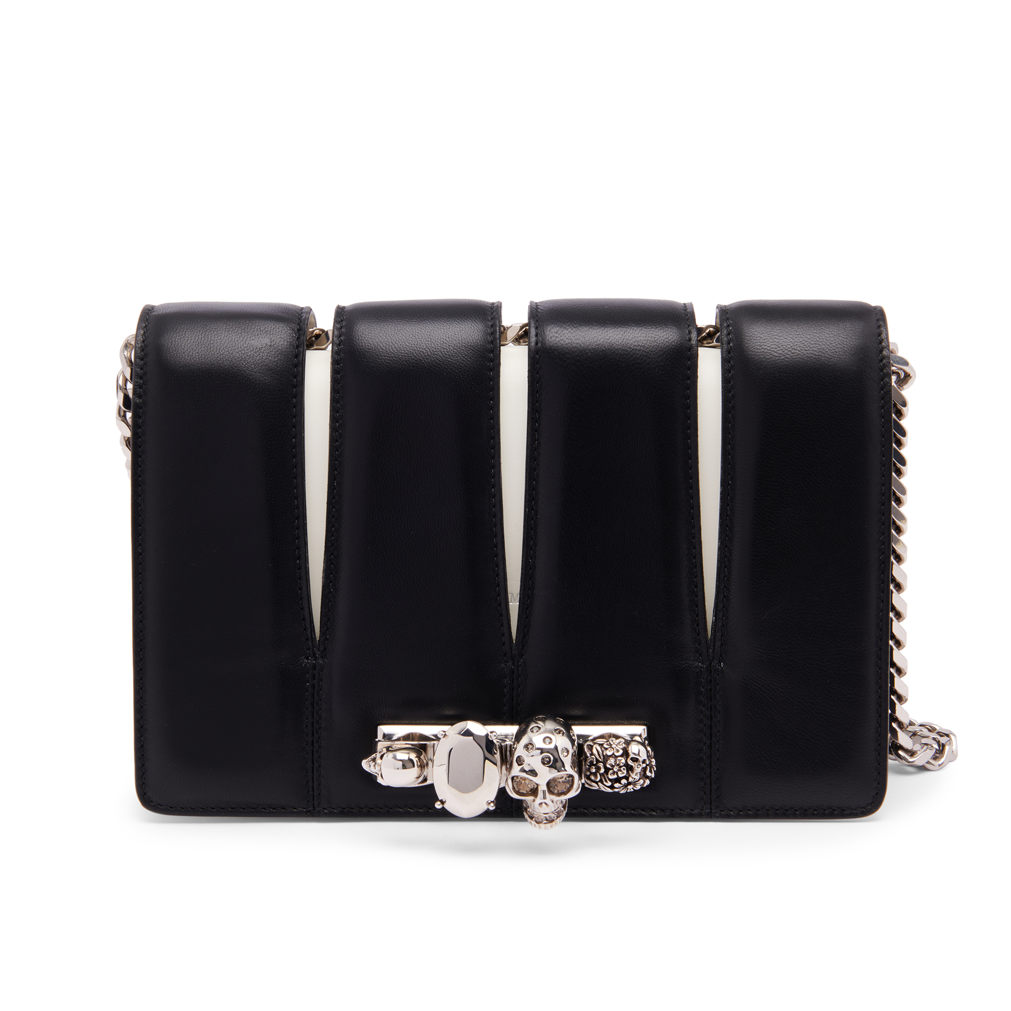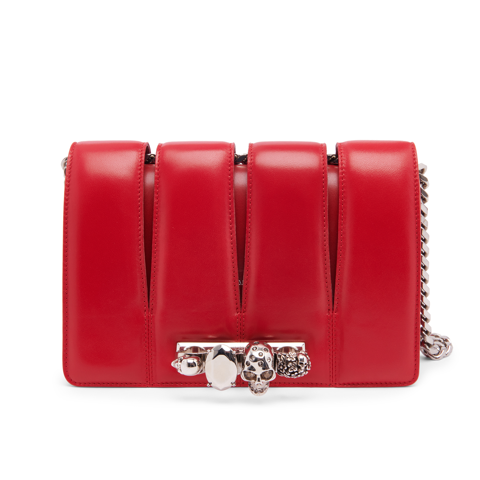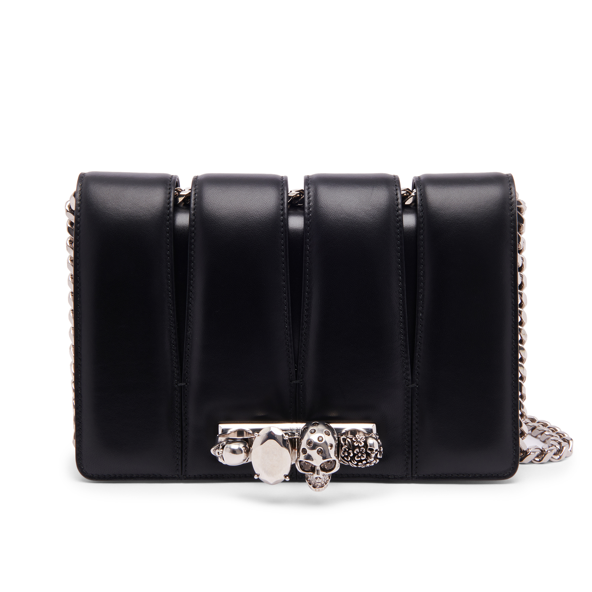 직사각 실루엣에서 보란 듯이 존재감을 드러내는 앤티크 실버와 골드 메탈 소재의 스컬 모티프는 펑크스타일과 빅토리아 시대의 메멘토 모리(memento mori; ‘죽음을 기억하라’는 뜻의 라틴어) 정신을 동시에 상징한다. 게다가 수작업으로 조각하고 크리스털로 장식한 고딕 양식 장식은 주위를 둘러싼 꽃과 강한 대비를 자아낸다.