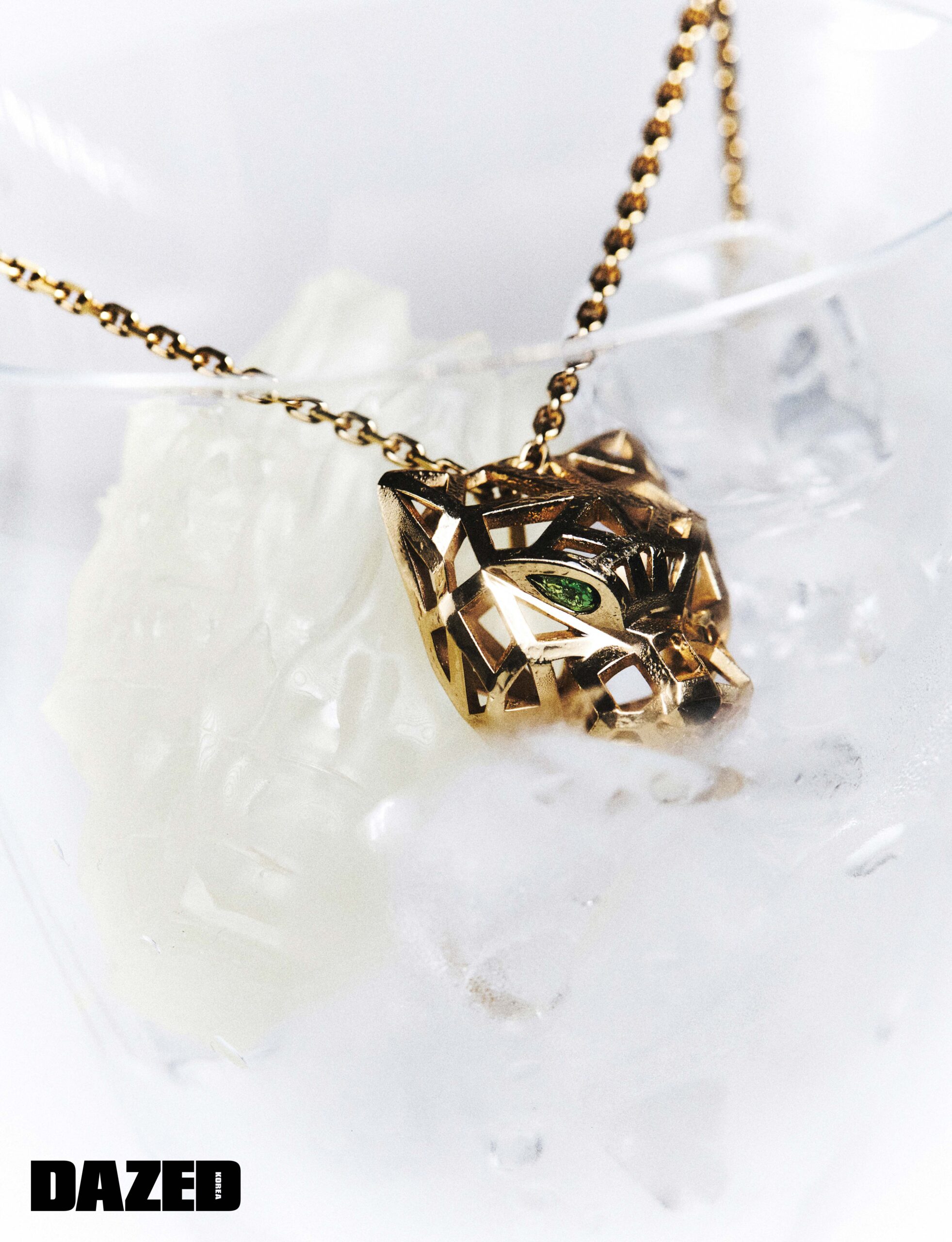 표범의 야생적인 이미지를 구조적으로 형상화한 팬더 드 까르띠에 네크리스는 까르띠에(Cartier), 라이터 케이스는 키미제이(Kimmy.J).