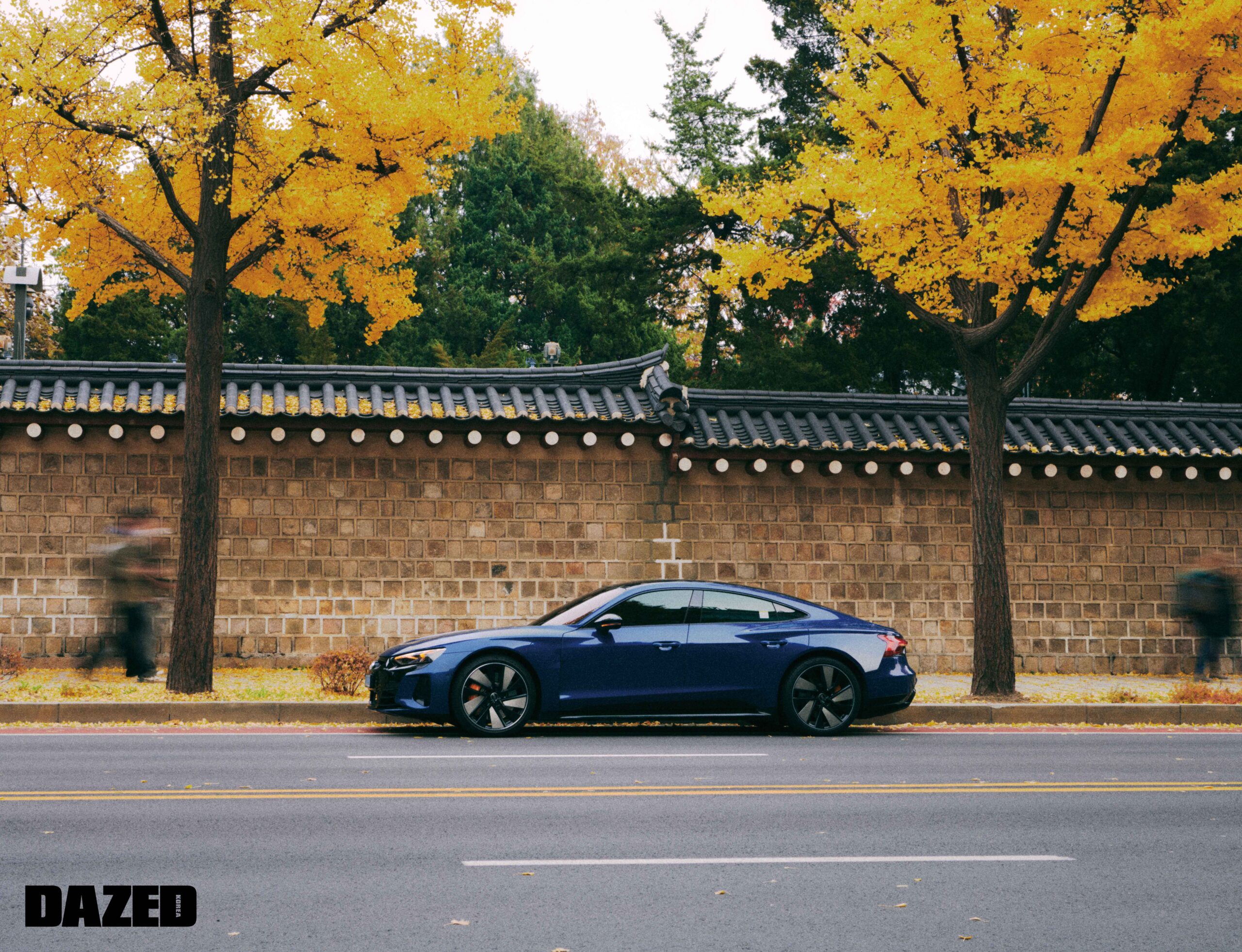 E-트론 GT를 타고 통의동에 갔다. 유구한 역사를 가로질러 온 도시와 건축의 레이아웃이 돋보이는 이곳 서울의 정맥. 그 위에 하루가 멀다하고 진화하는 미래 모빌리티의 디자인 언어를 덧입히는 광경은 언제고 짜릿하다. 부드러운 루프 곡선은 돌담 등성이를 따라 흘렀고, 후방 전체 너비에 걸친 애니메이션 라이트 스트립은 은행과 단풍처럼 흩날렸다. 우리는 그렇게 아우디 E-트론 GT를 타고 걸었다.