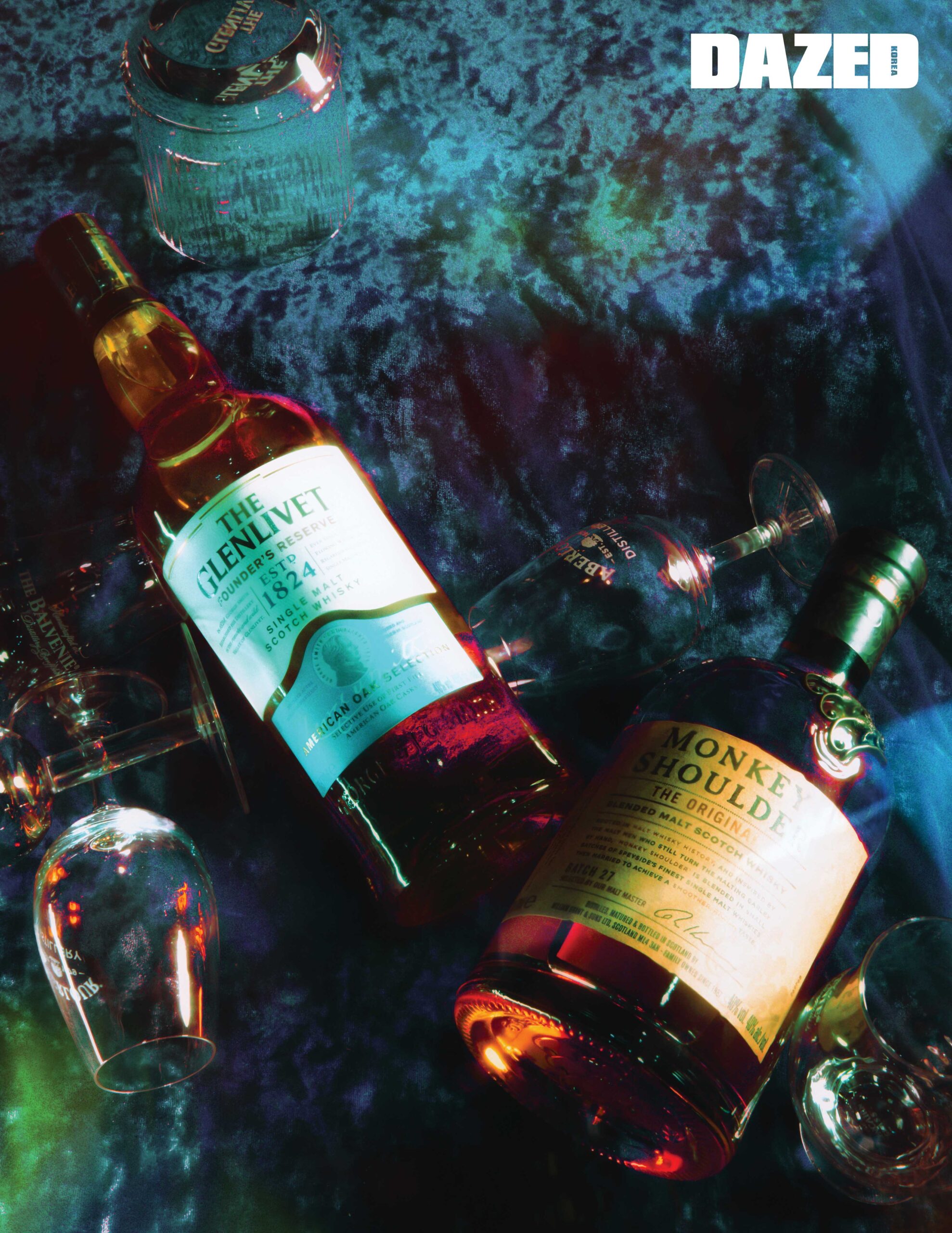 앞서 발베니 위스키 이야기를 하며 언급한 ‘몽키 숄더’라는 이름의 유래를 기억하나. 발아 보리를 가공하는 고된 수작업으로 원숭이처럼 어깨가 구부정하게 굽은 장인들의 노고를 기리고자, 발베니를 소유한 윌리엄 그랜트 앤 선스William Grant & Sons는 2005년 몽키 숄더라는 이름의 블렌디드 몰트 위스키를 생산한다. 마찬가지로 발베니와 글렌피딕이 탄생하는 스페이사이드에서 탄생한 몽키 숄더는 향긋한 바닐라 향과 자유롭게 튀는 에너지가 매력적이다. 보틀에 붙은 세 마리의 원숭이 배지는 몽키 숄더가 세 가지 싱글 몰트위스키 원액만을 블렌딩한 제품임을 상징한다. 출시 이후 전 세계 바텐더가 선정한 ‘가장 트렌디한 위스키’ 같은 타이틀을 연이어 얻으며 전통 스카치위스키보다 캐주얼하고 부드러운 매력을 확산하고 있다.